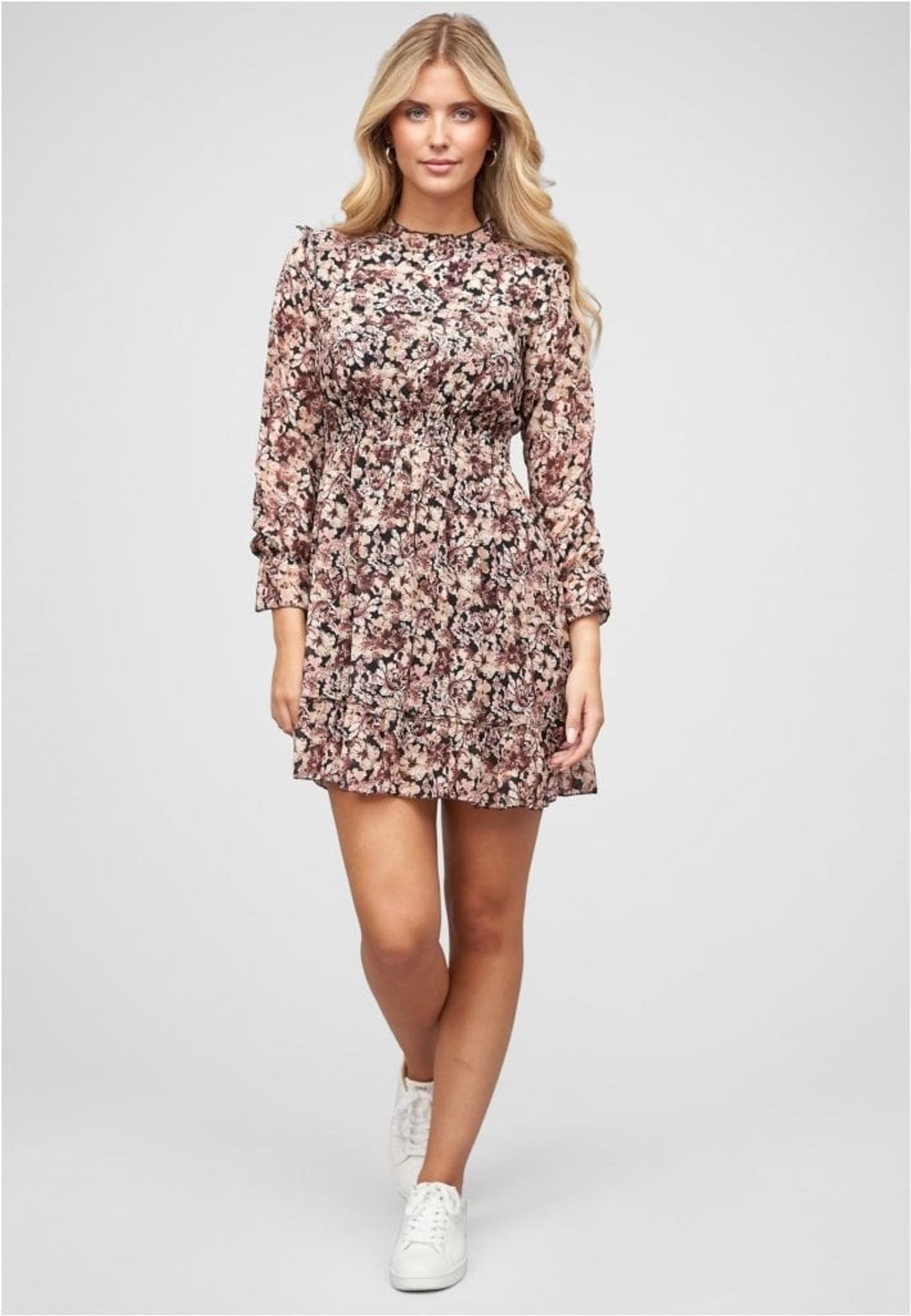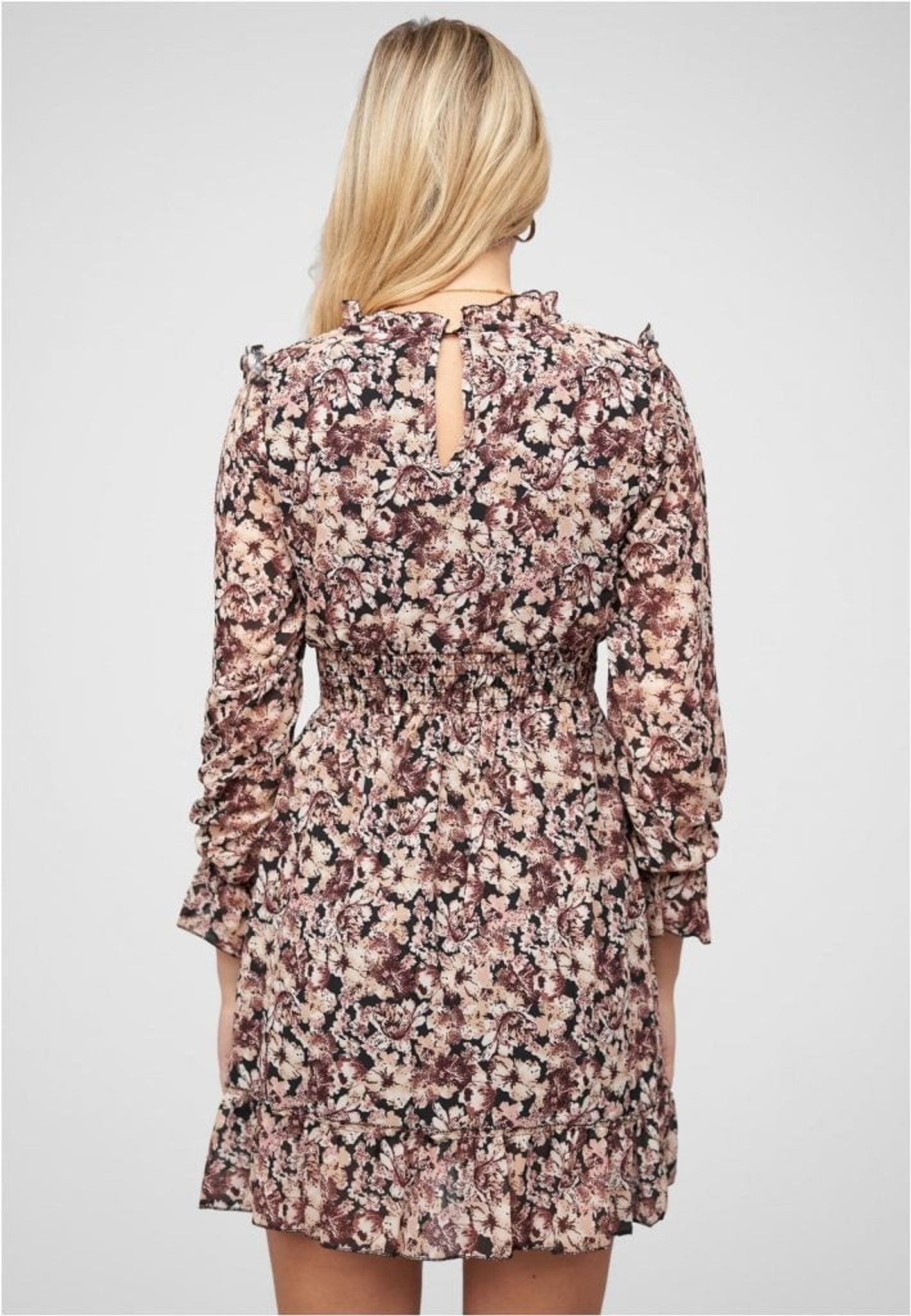 Ge din garderob ett lyft med denna tidlösa klänning som framhäver din personliga stil. Låt blommönstret och den feminina designen bli en favorit i din klädsel.