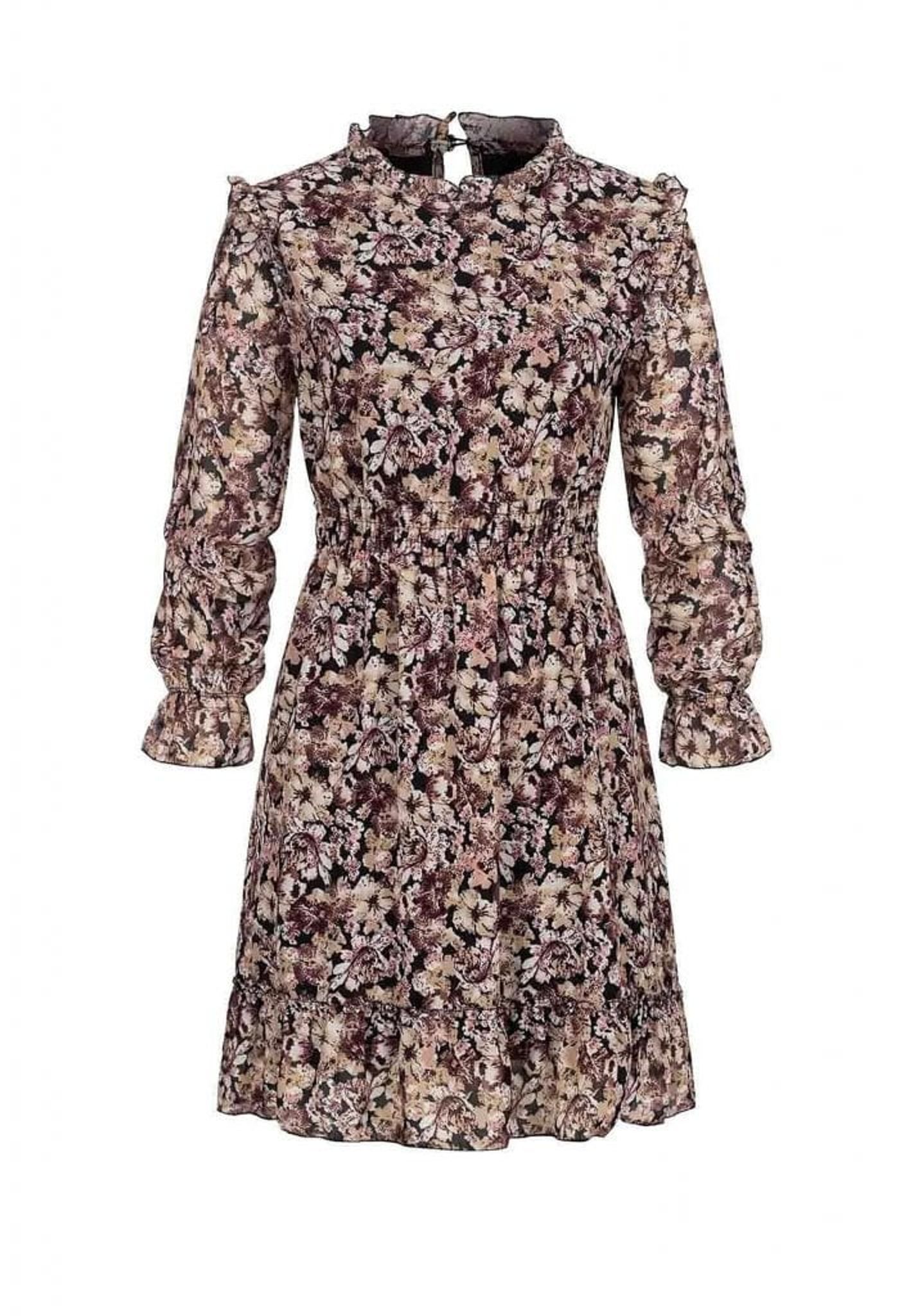 Chiffonklänning med midjeband och blommönster.