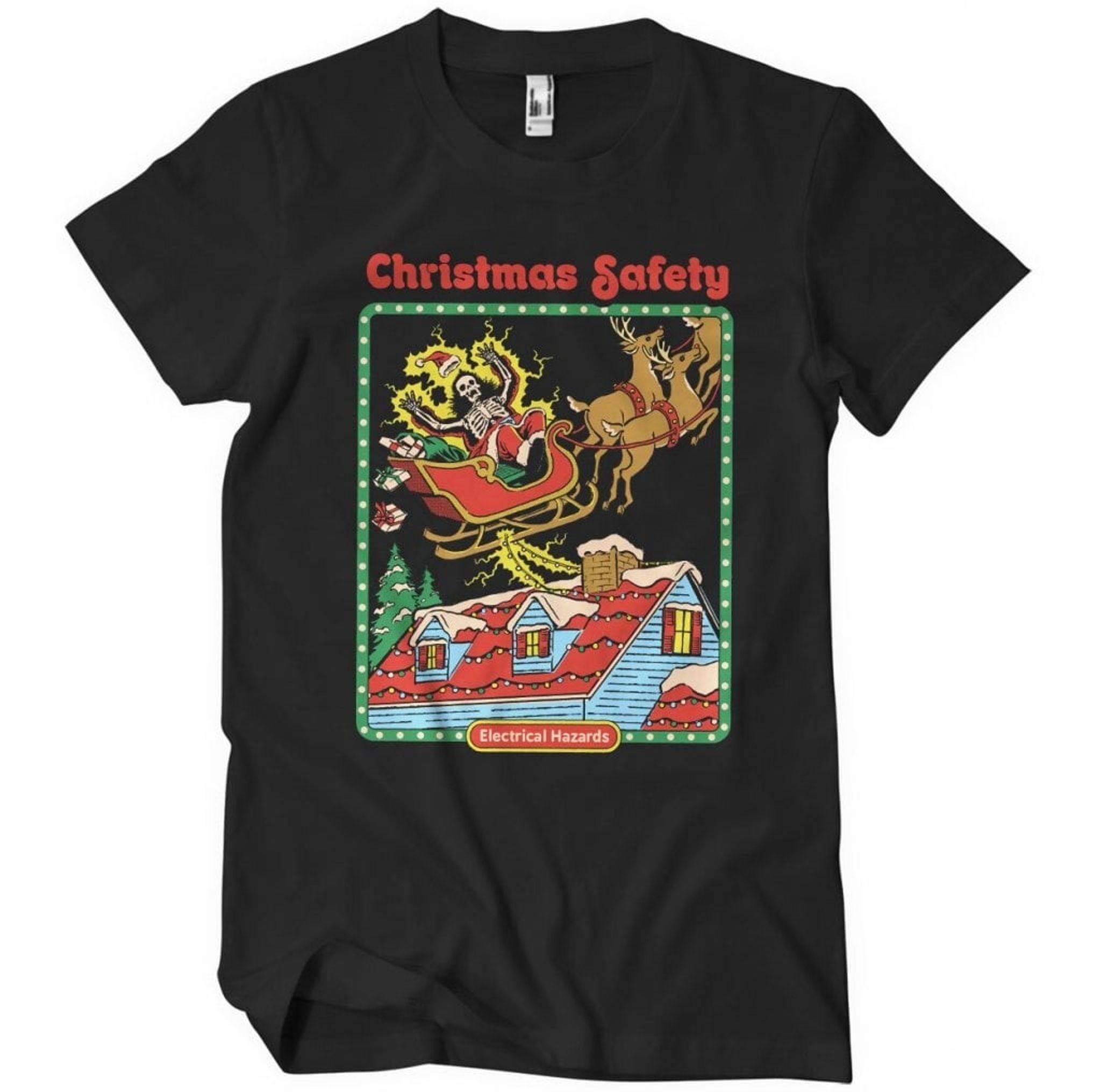 Steven Rhodes är känd för sin distinkta stil som blandar nostalgi med en tvist av svart humor, och denna "Christmas Safety" T-shirt är inget undantag. Med ett ögonblickligt igenkännbart designelement från Rhodes, kombinerar denna T-shirt klassisk julglädje med en lekfull varning för de potentiella farorna som kan uppstå under helgen.