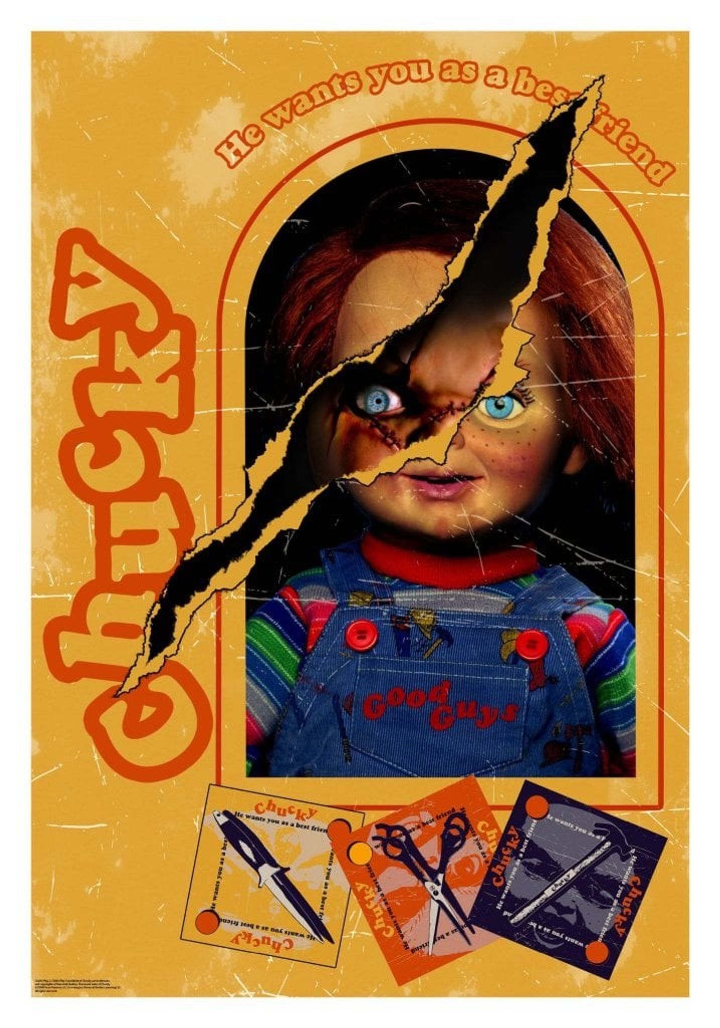 Poster med motiv av lådan som den klassiska mördardockan Chucky köptes i. Revan i lådan avslöjar dock Chuckys mörka sida.