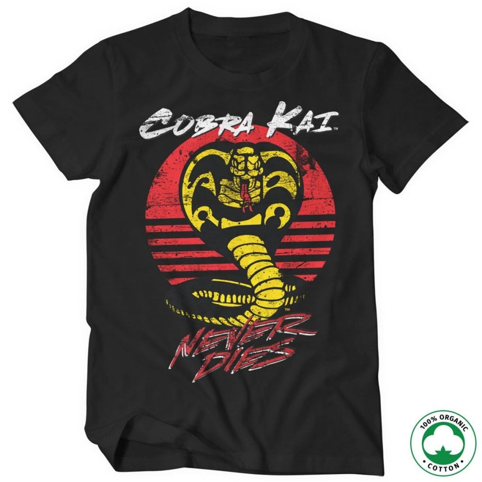 Så gör som Cobra Kai och visa att "Cobra Kai Never Dies" med denna organiska T-shirt som varar länge och visar att du är en riktig karate-kung eller -drottning.