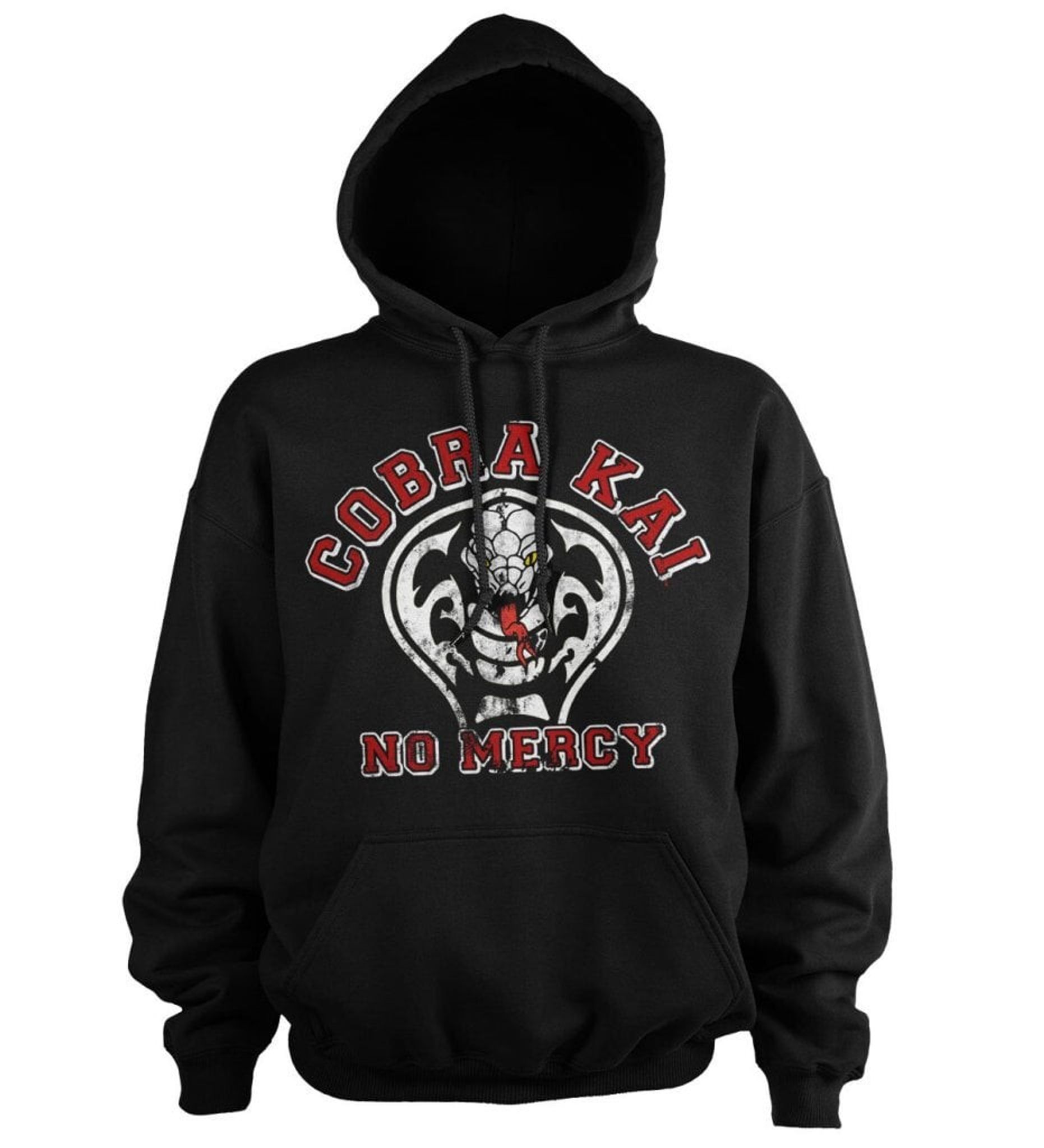Oavsett om du är en hardcore fan av Karate Kid eller bara gillar att bära snygga och bekväma kläder, så är Cobra Kai - No Mercy Hoodie det perfekta tillskottet till din garderob. Så gå och visa alla att du inte tar några fångar när det kommer till stilkänsla och attityd!
