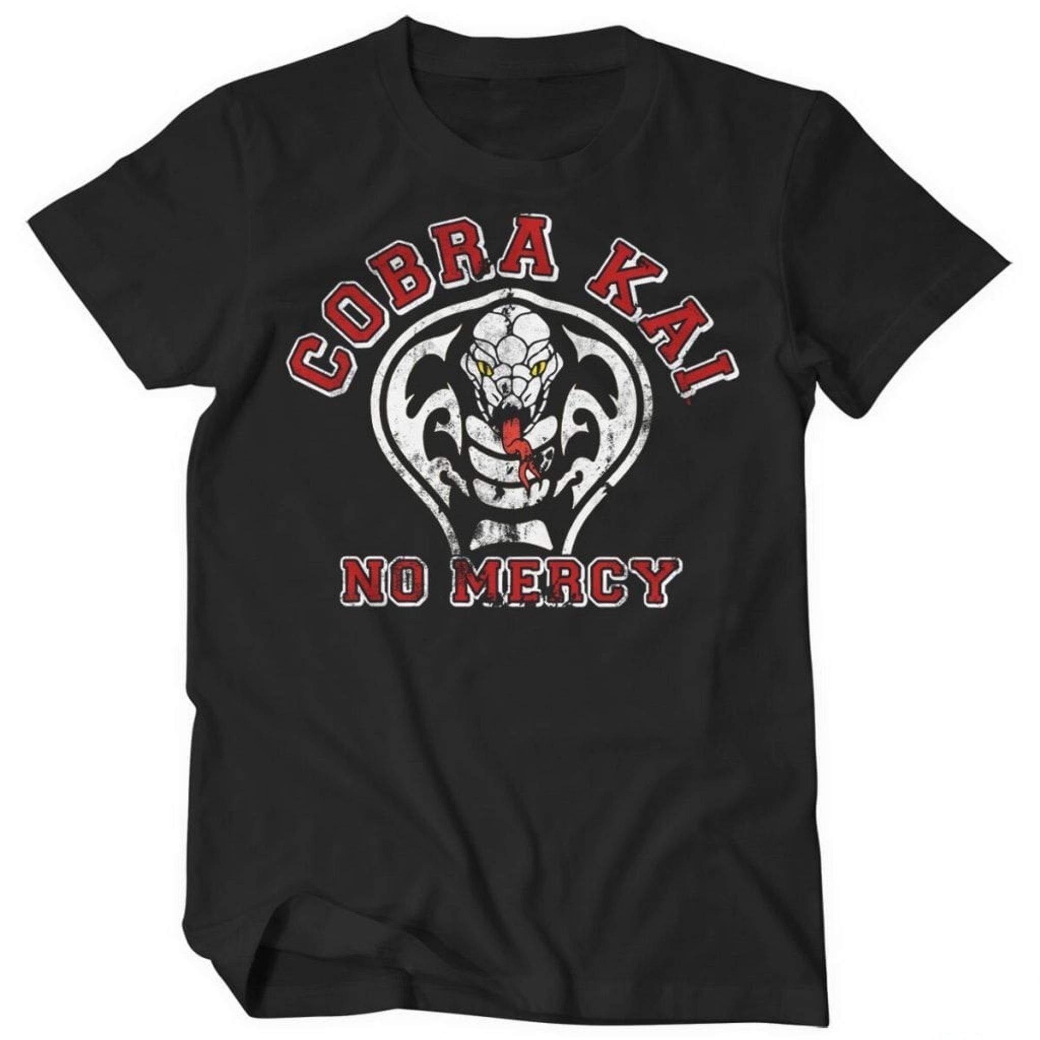 Så varför inte ge ditt klädskåp en uppdatering med denna karatemästarmundering? För vad är väl bättre än en t-shirt som är både stilfull, bekväm och miljövänlig? Ta tag i din inre karatemästare och visa ingen nåd med denna Cobra Kai - No Mercy Organic T-Shirt!