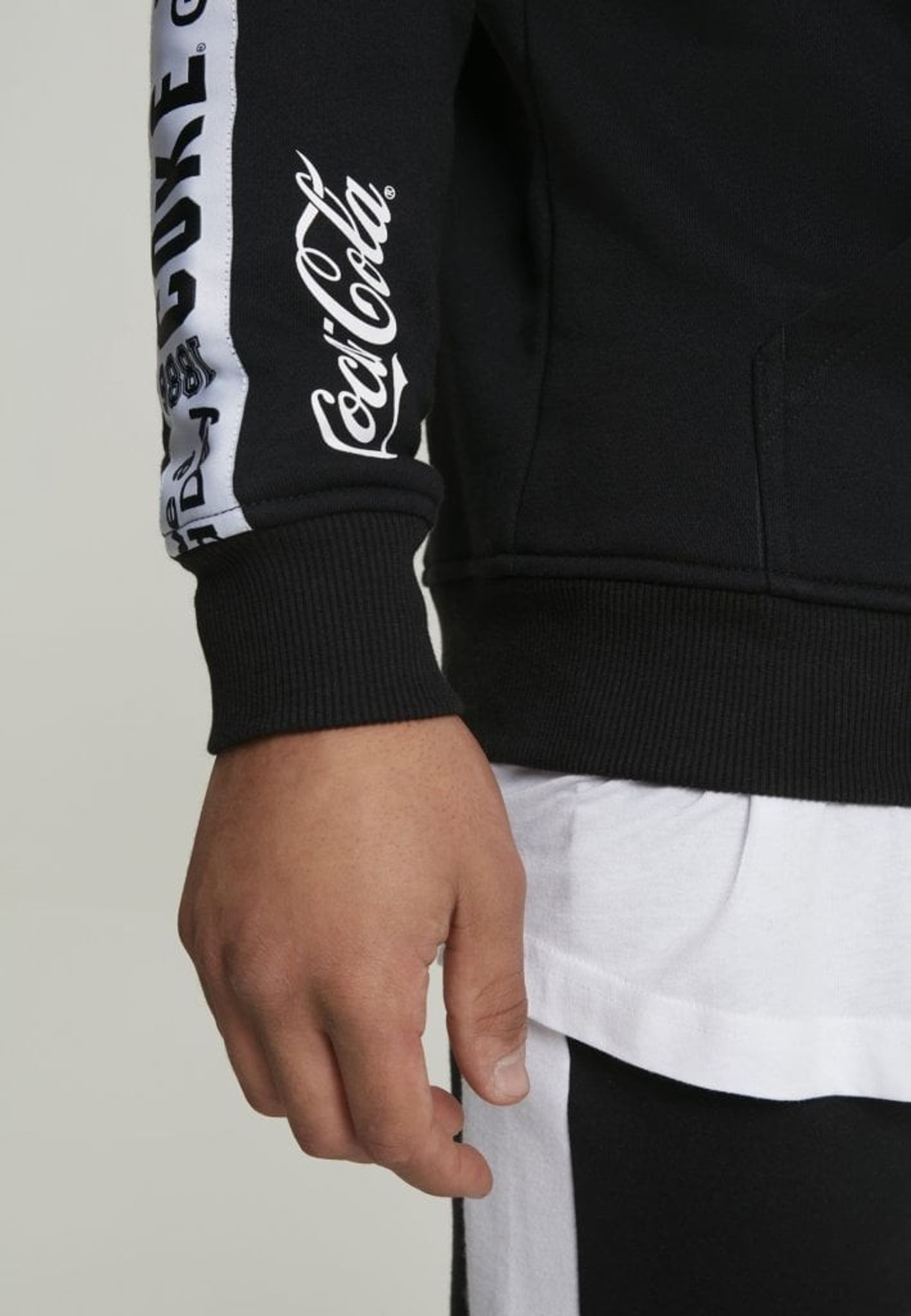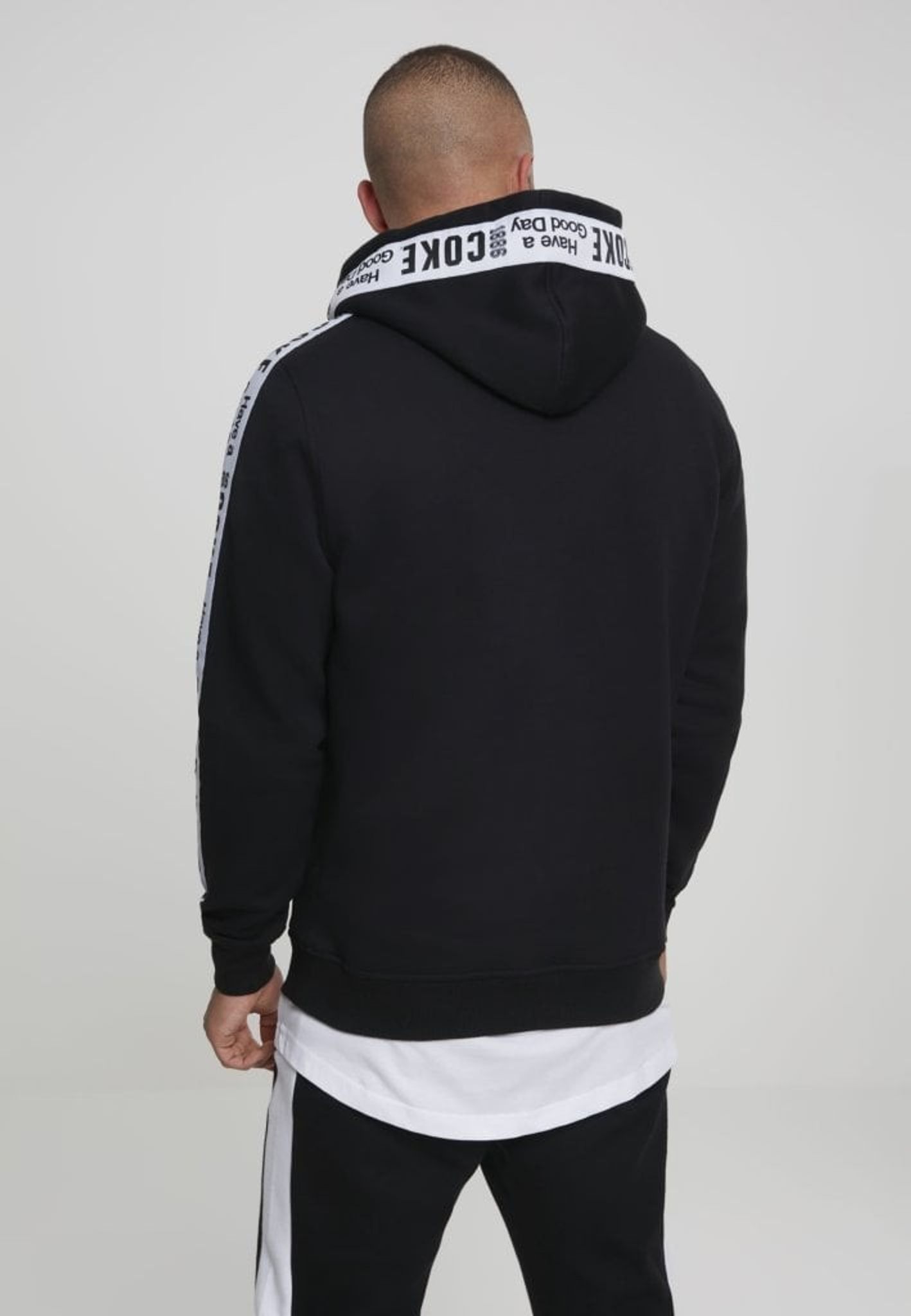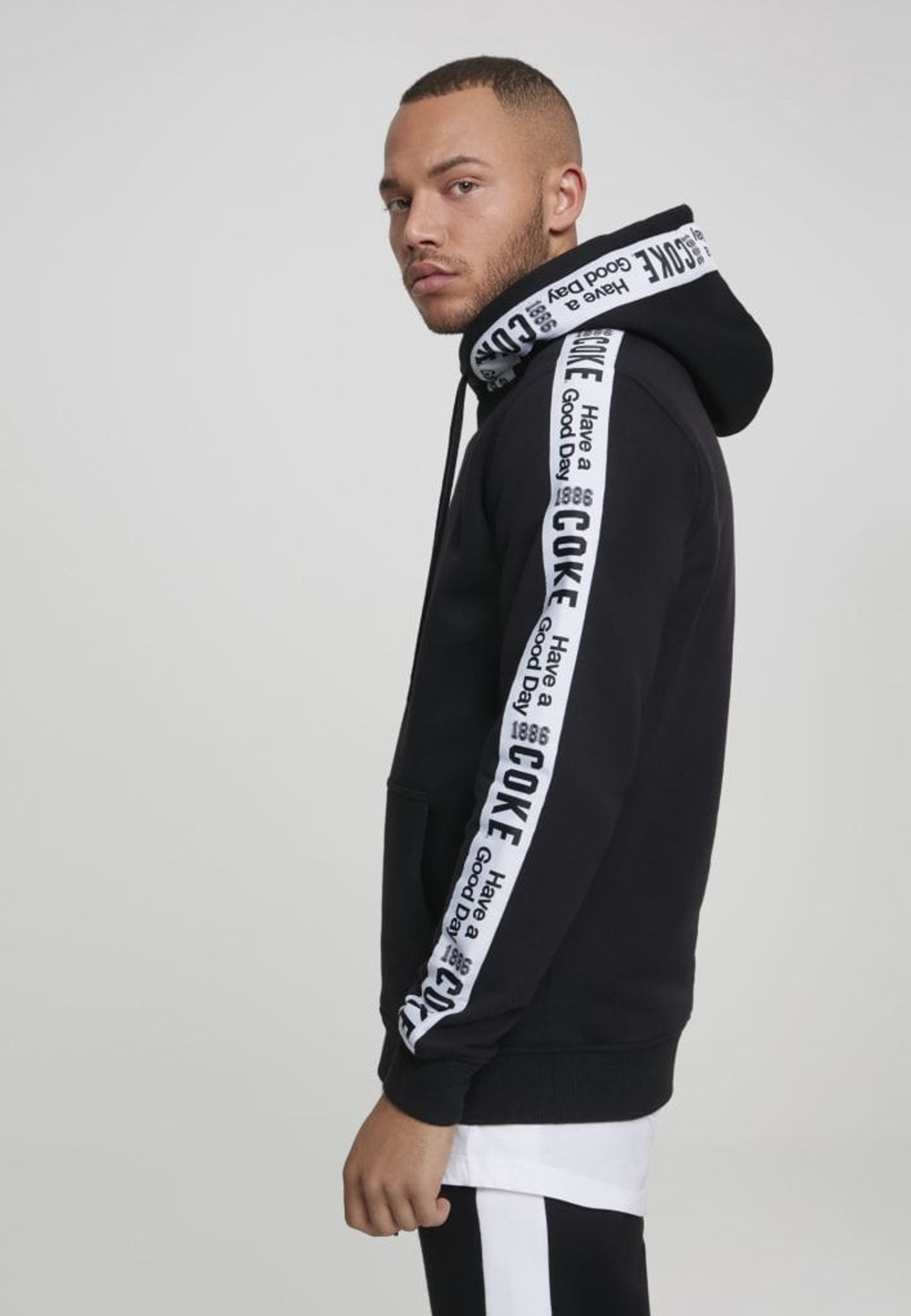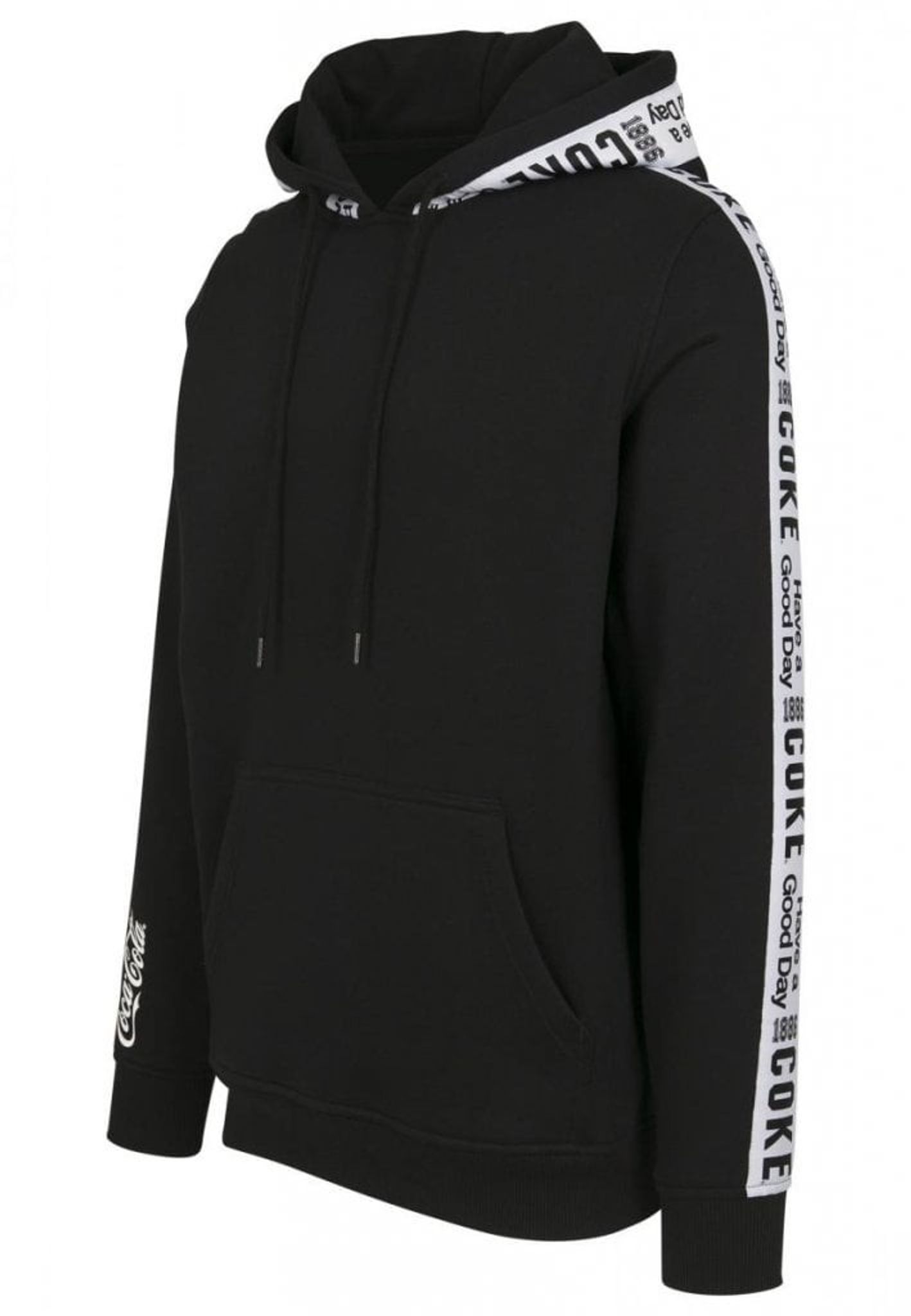 En snyggt stylad hoodie från Coca-Cola med stripes på ärmar och runt huva.