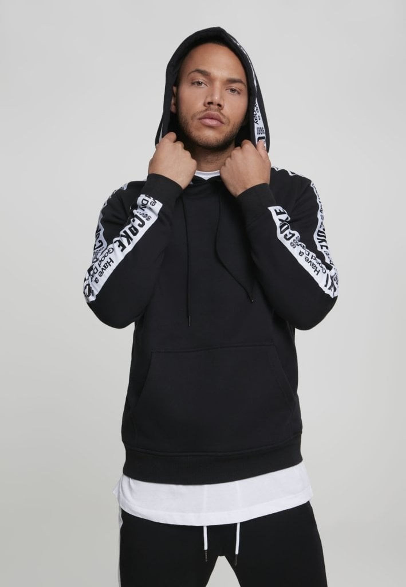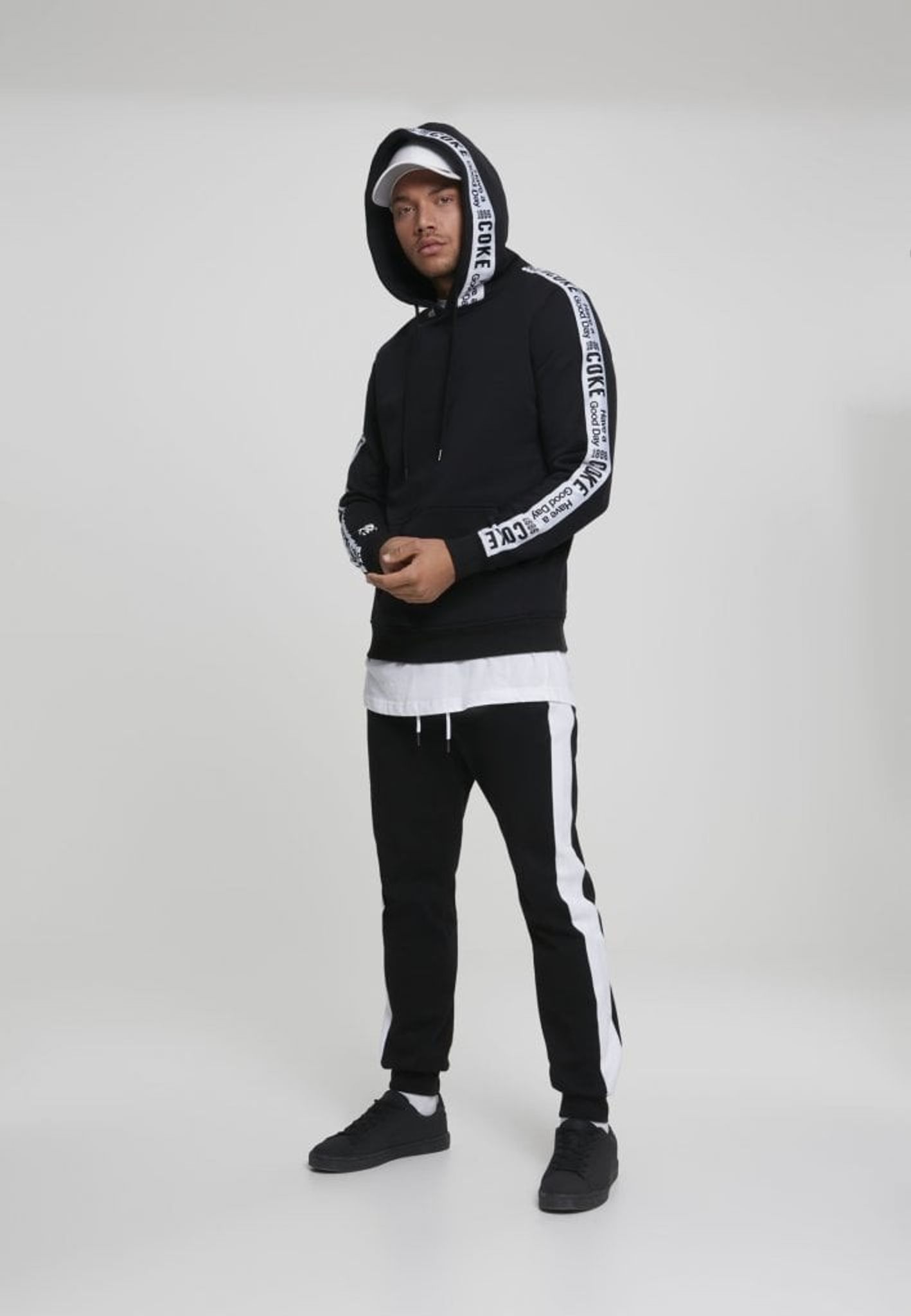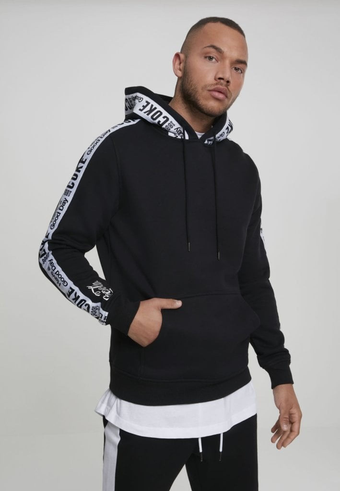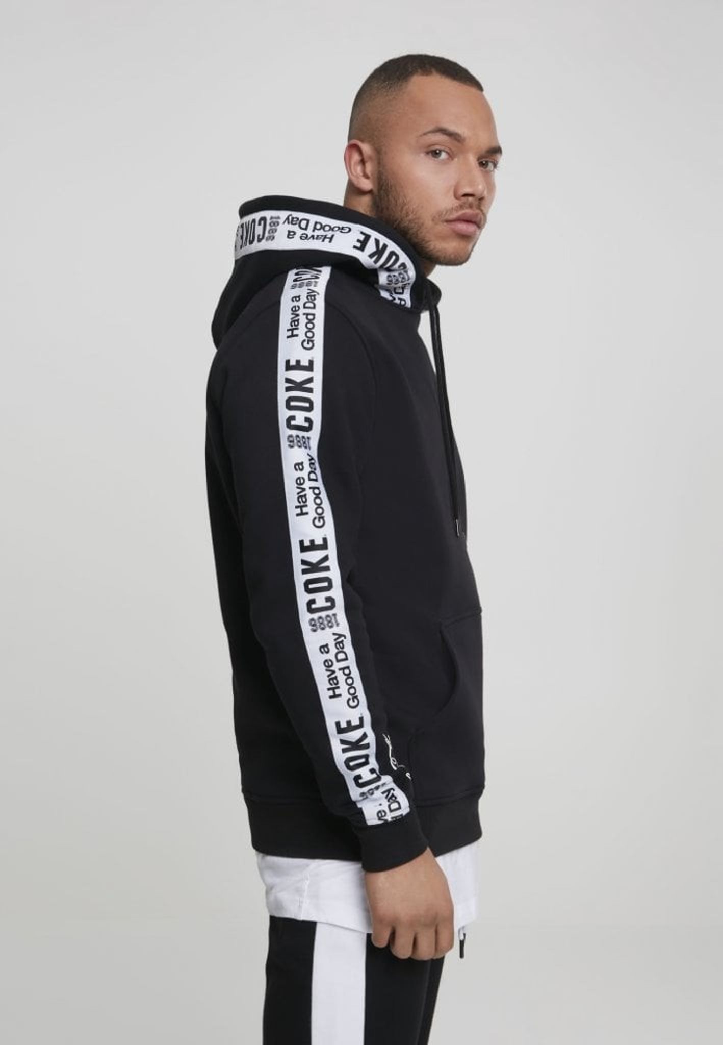 En snyggt stylad hoodie från Coca-Cola med stripes på ärmar och runt huva.