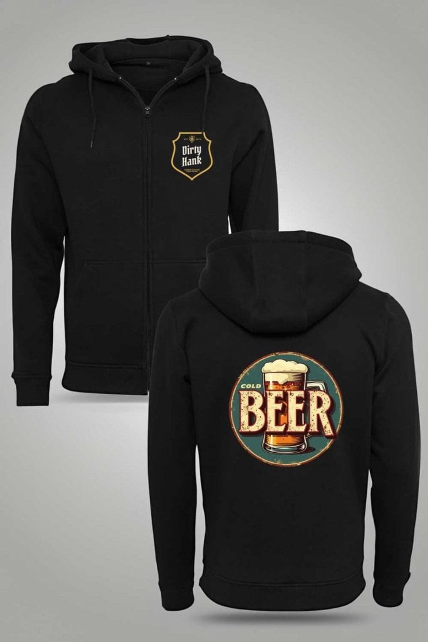 Denna ziphoodie är en hyllning till ölälskarens vardagsstil. På framsidan finns det klassiska "Dirty Hank"-emblemet som utstrålar karaktär och enkelhet.