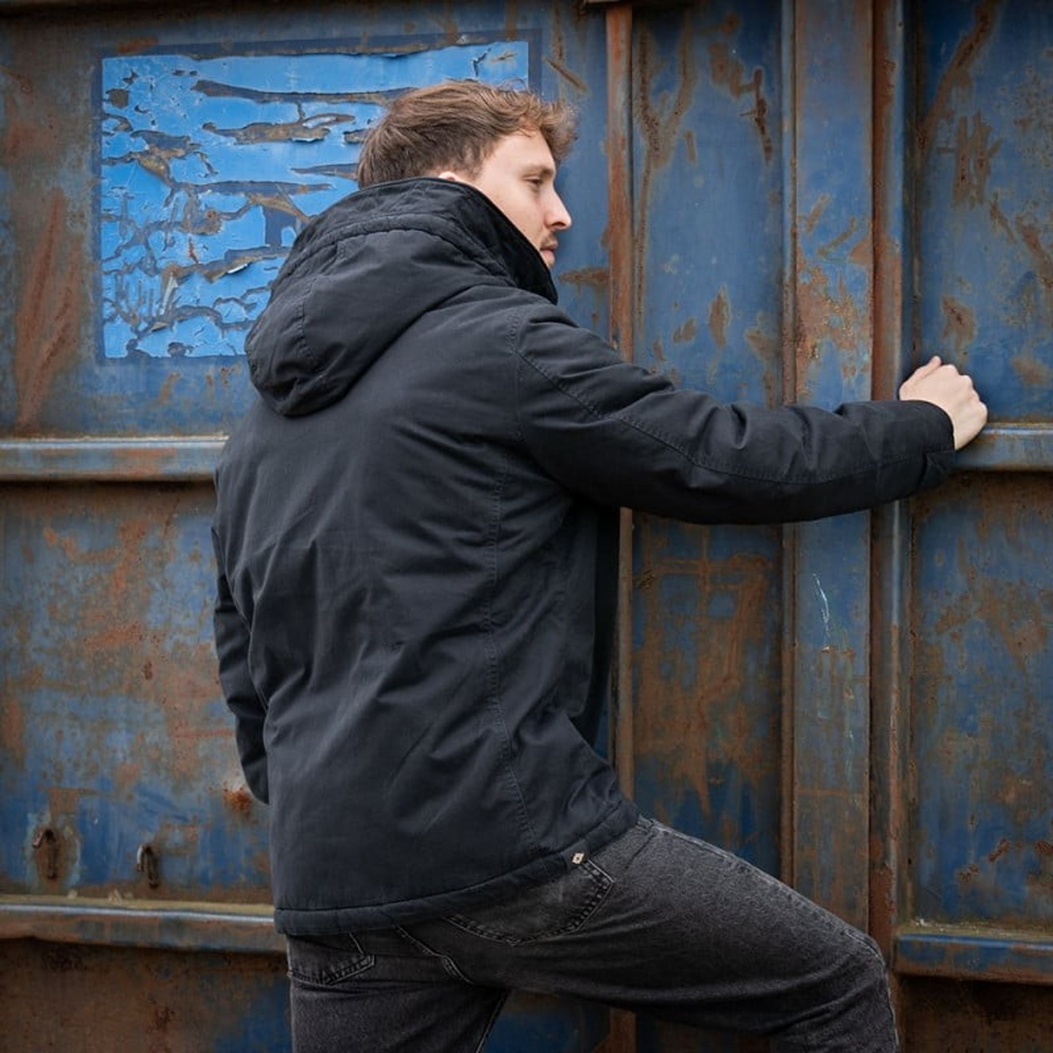 - Fodrad huva (justerbar)
