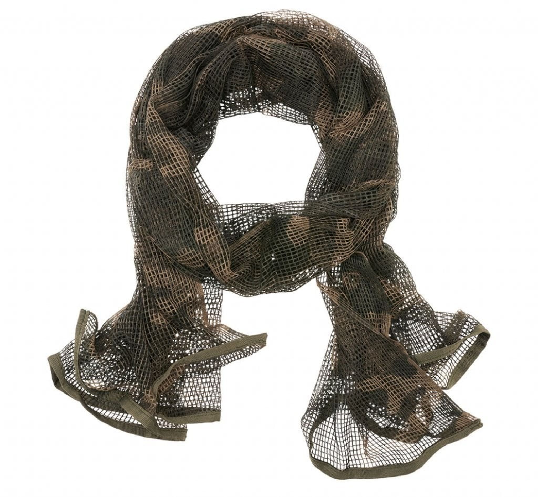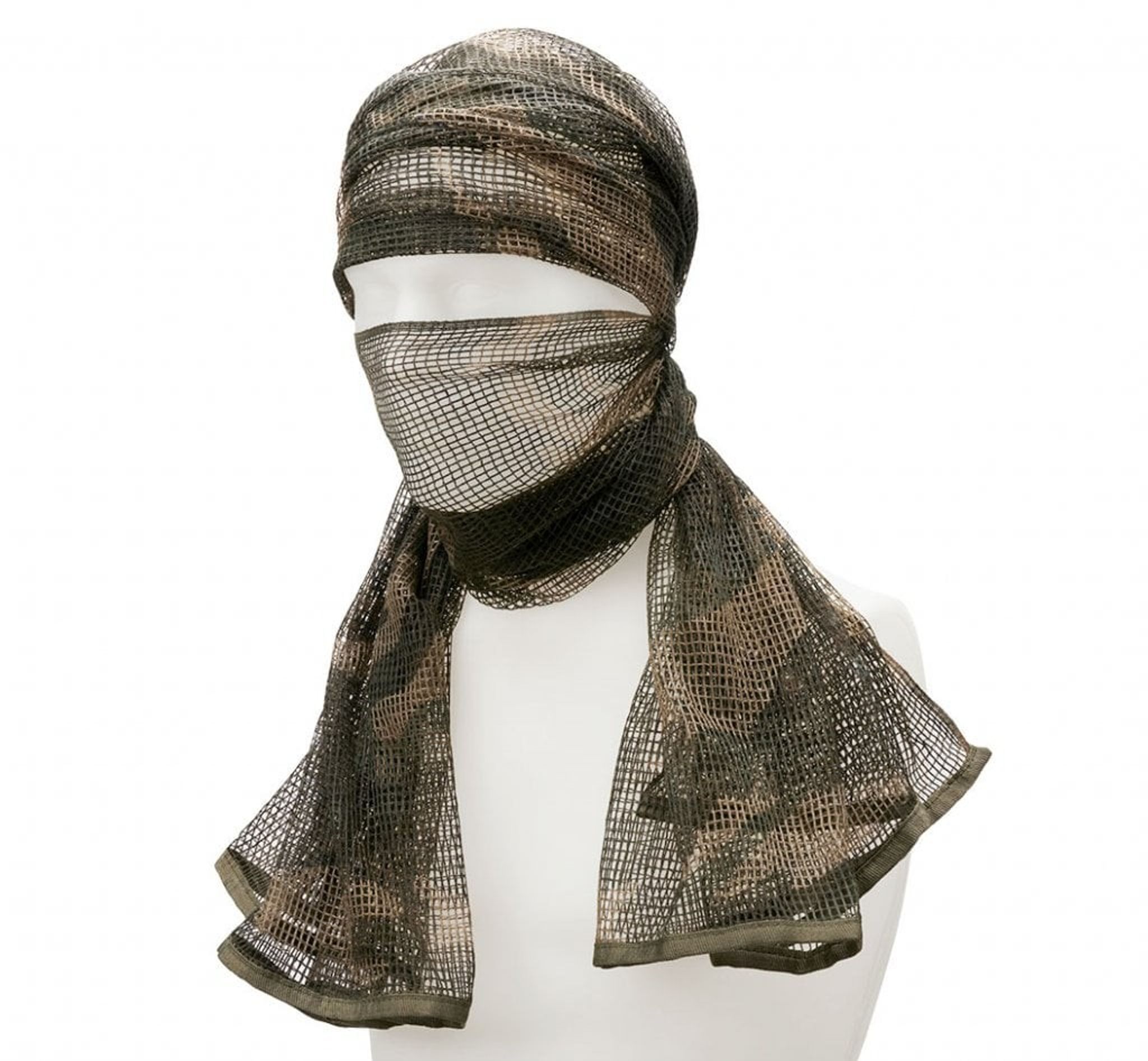 En nätsjal i scrimnät och kamouflage i mörka nyanser.