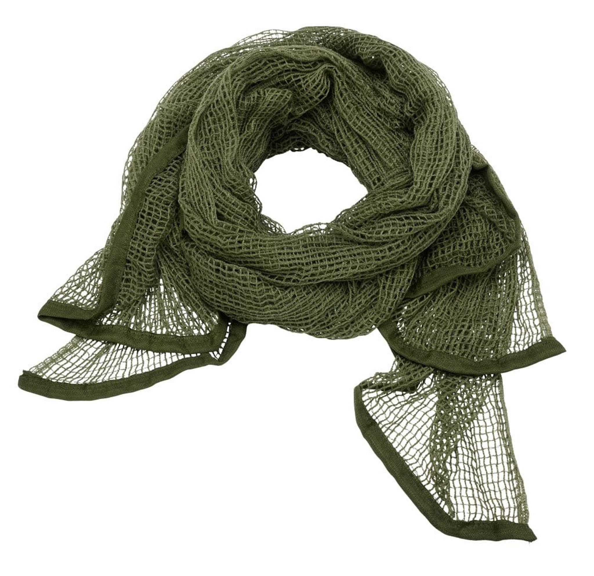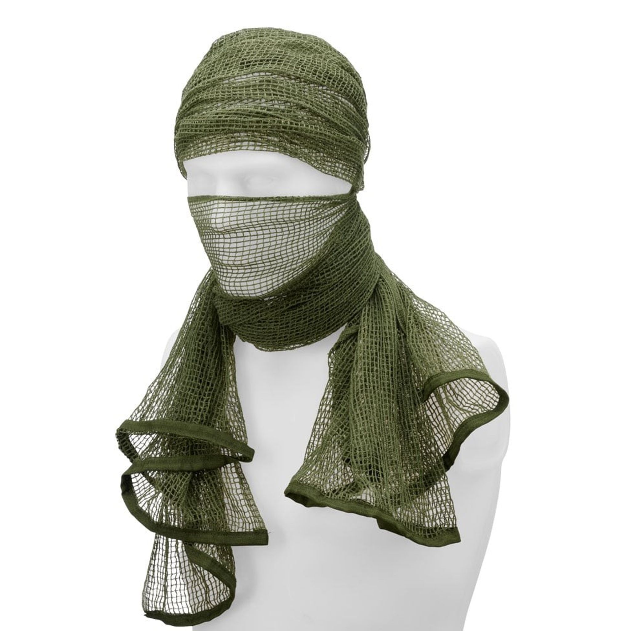 En nätsjal i olivgrön färg. Nätsjalen är främst ämnad att fungera som kamouflage för hals, nacke och huvud.
