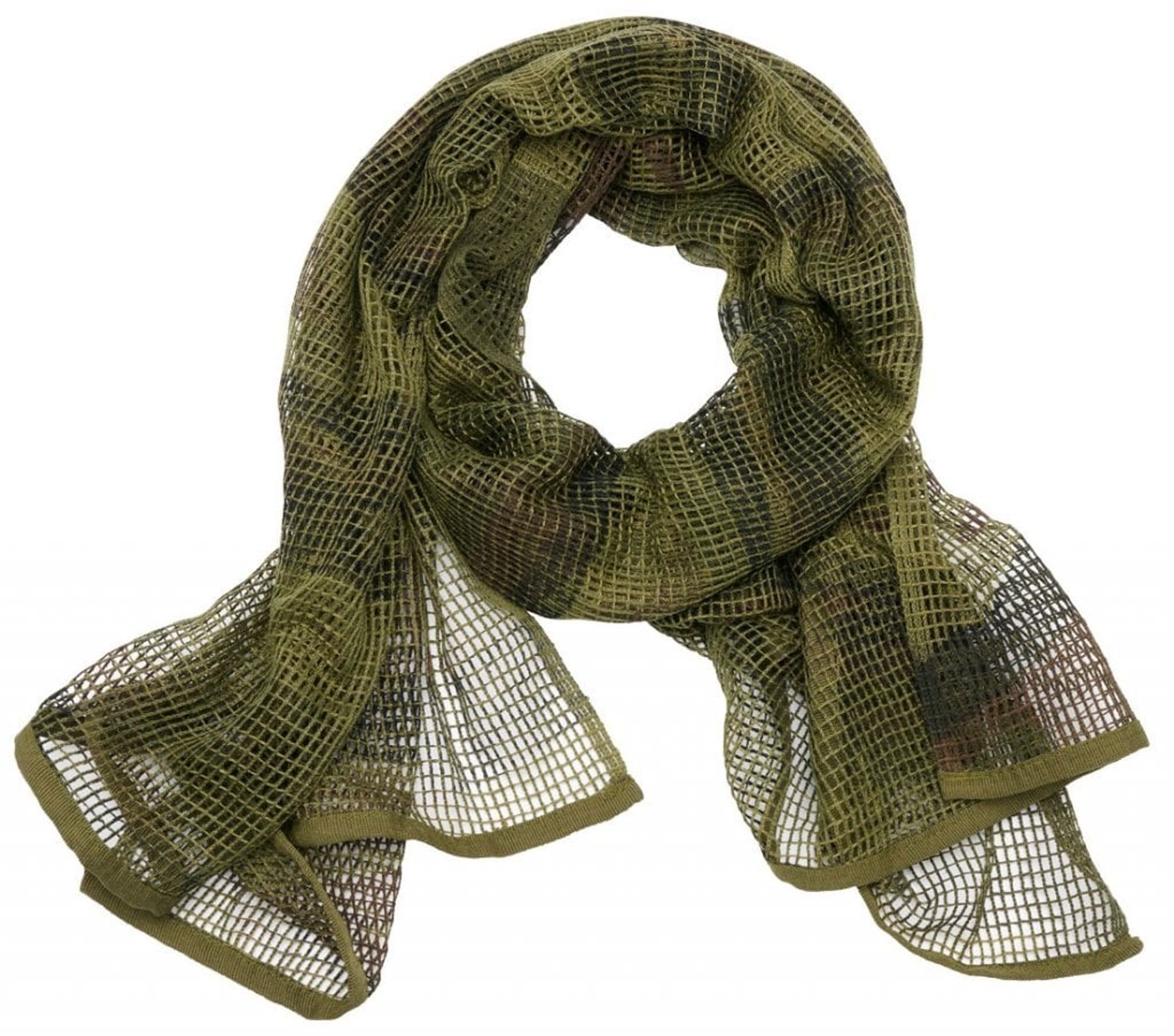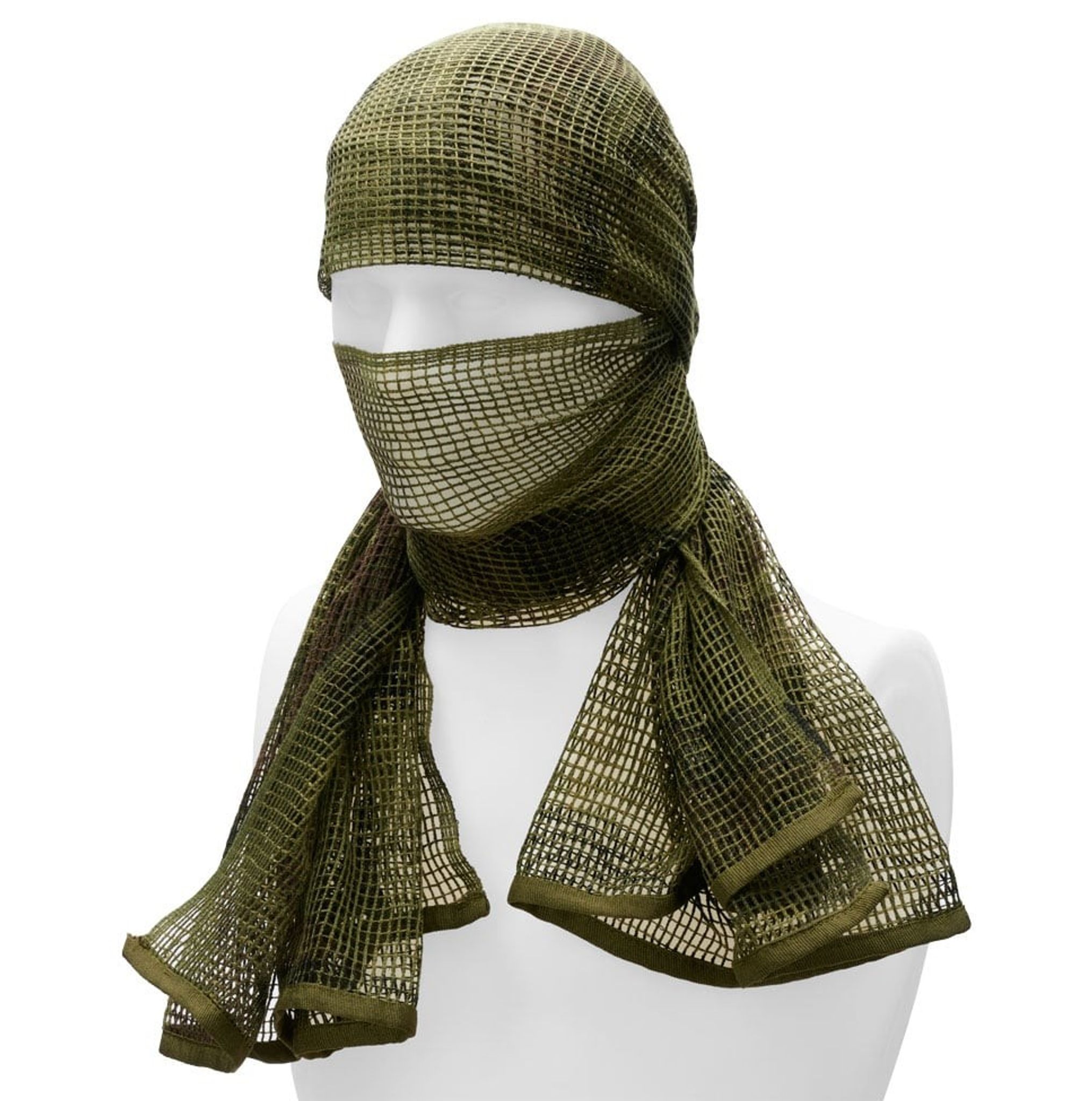 En nätsjal eller scrim scarf i det klassiska gröna kamouflaget - woodland.