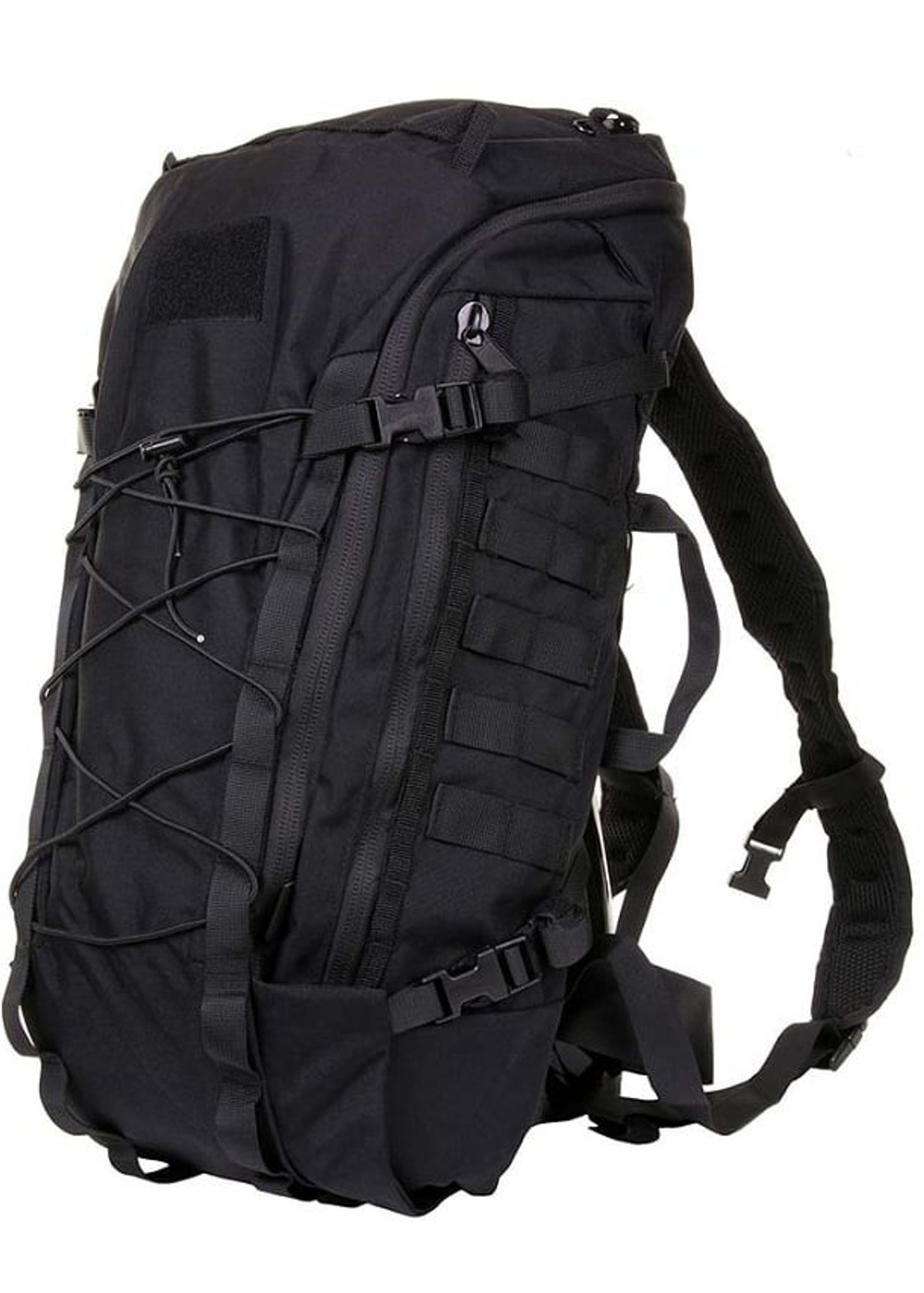 Ryggsäcken har en enda dragkedja som gör att den kan öppnas helt, vilket underlättar åtkomst till innehållet. Inuti finns flera velcro-paneler, vilket möjliggör fäste av olika tillbehör och anpassningar efter behov.