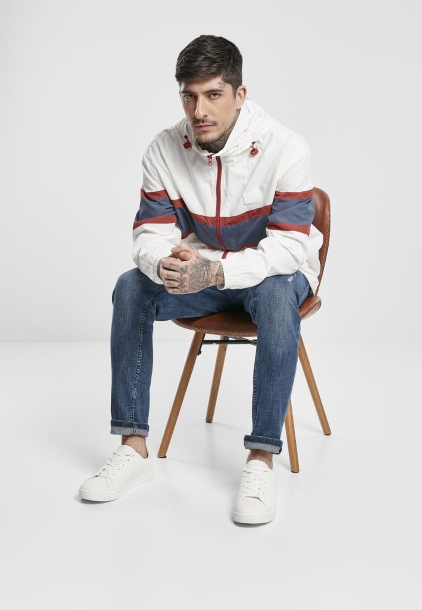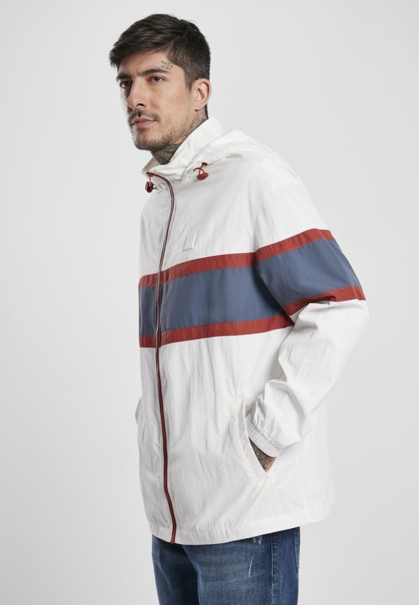 Söker du en casual trendig anorak-jacka? Då måste du spana in denna jacka från tyska Urban Classics. En avslappnad och stilren jacka i mestadels vitt men också vinröda och blå nyanser.