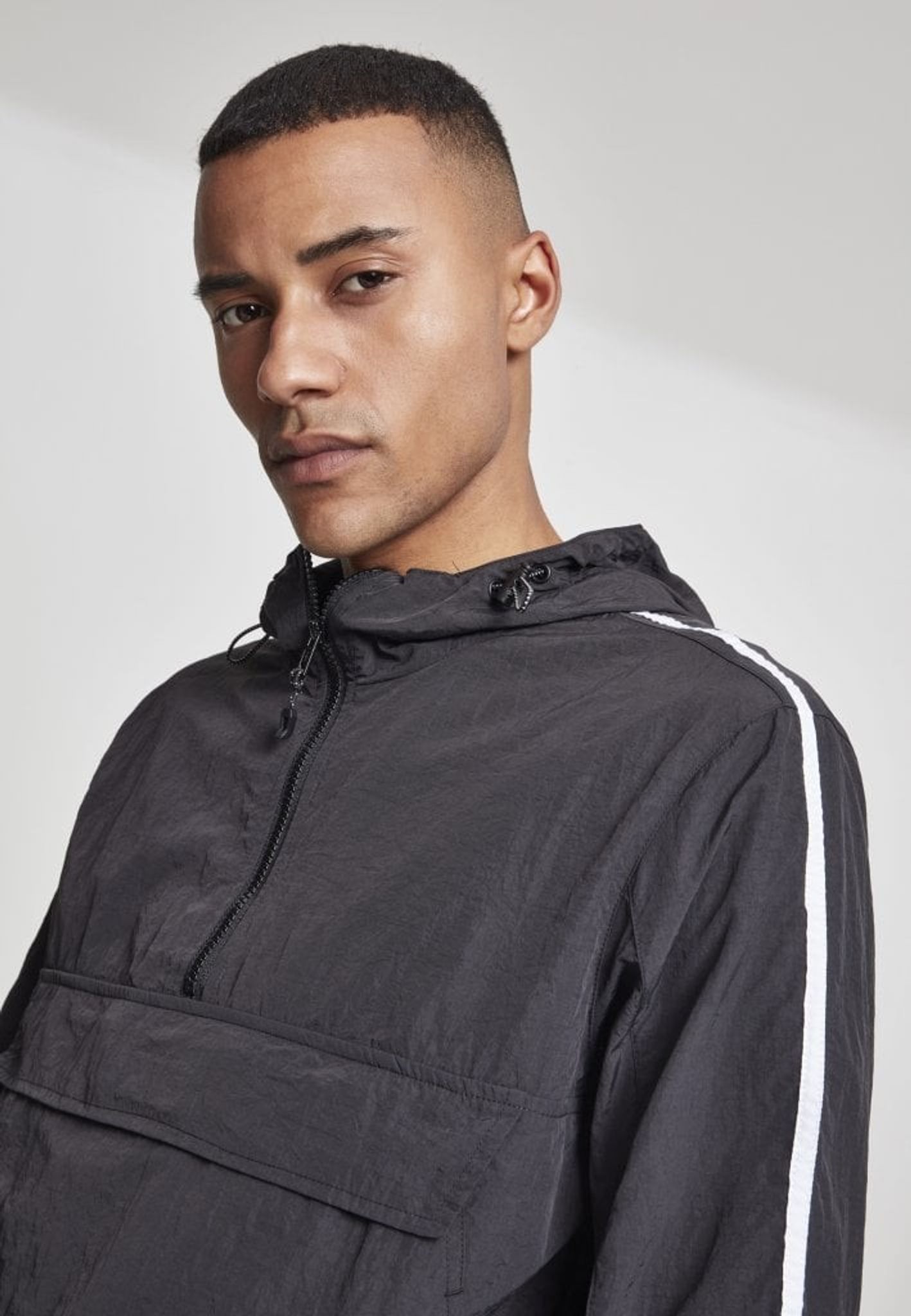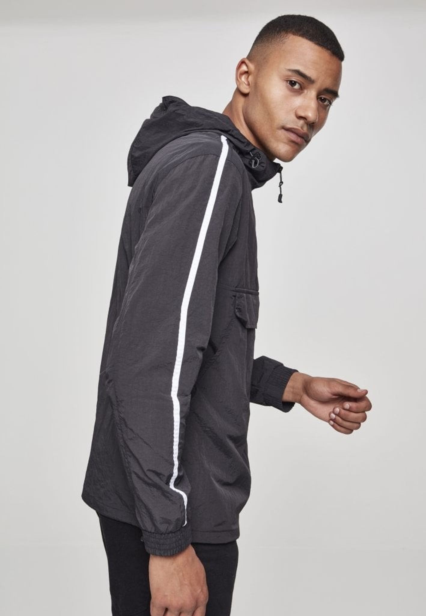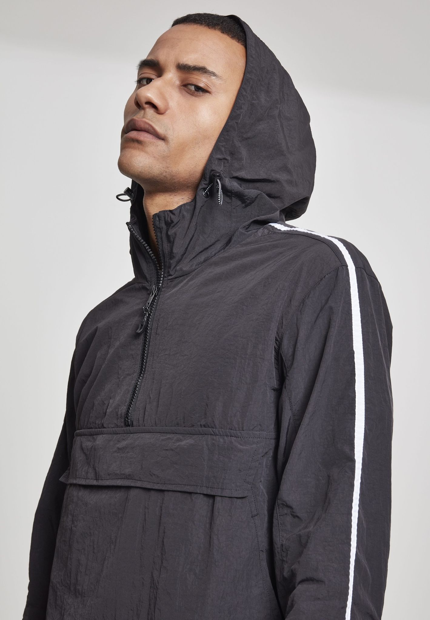 En pull over-jacka med lätt skrynklig effekt och snygga vita streck på ärmarna som ger en sportig look.