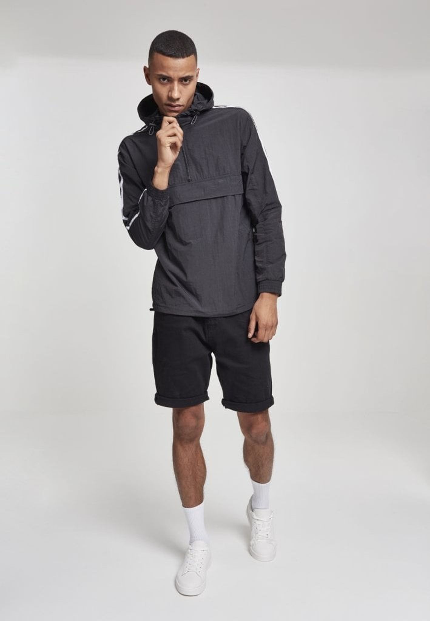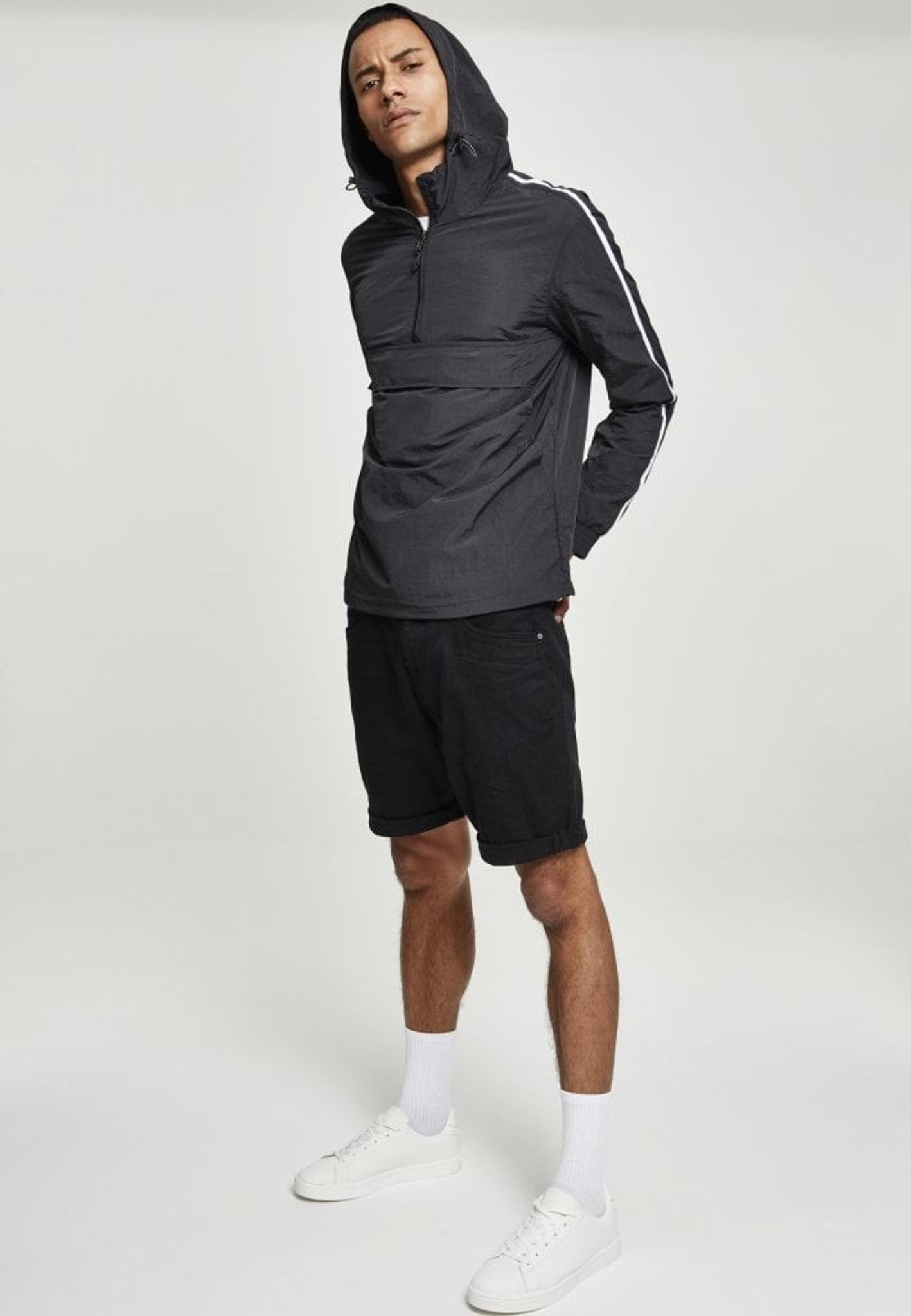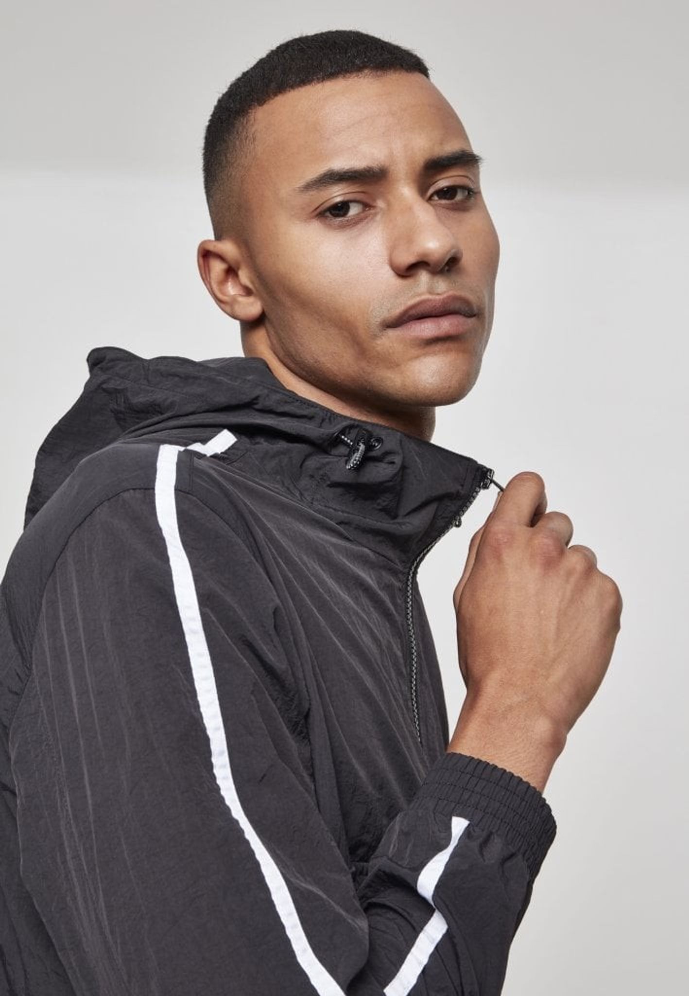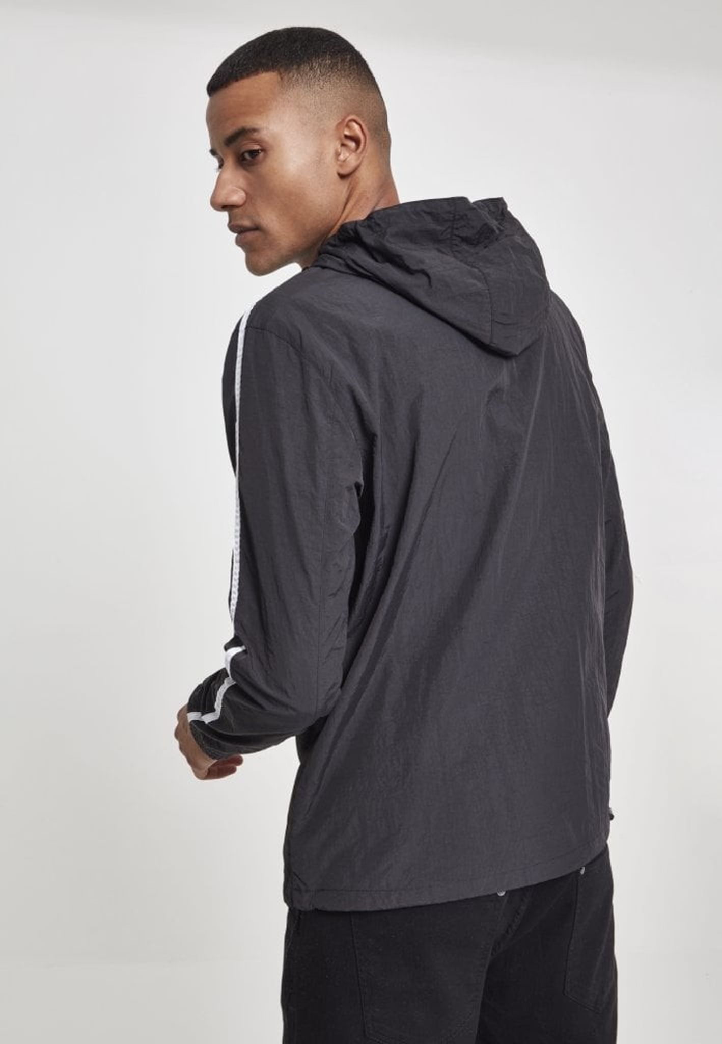 En pull over-jacka med lätt skrynklig effekt och snygga vita streck på ärmarna som ger en sportig look.