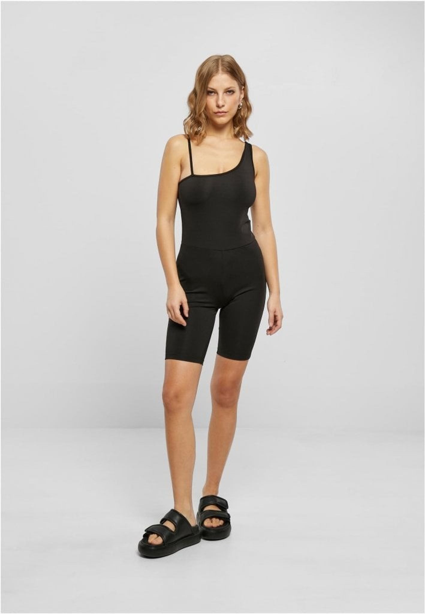 Denna återvunna cykeljumpsuit är en tydlig trendsetter. Tack vare dess asymmetriska halslinje och två remmar av olika bredd erbjuder den individualitet, komfort och elegans samtidigt.