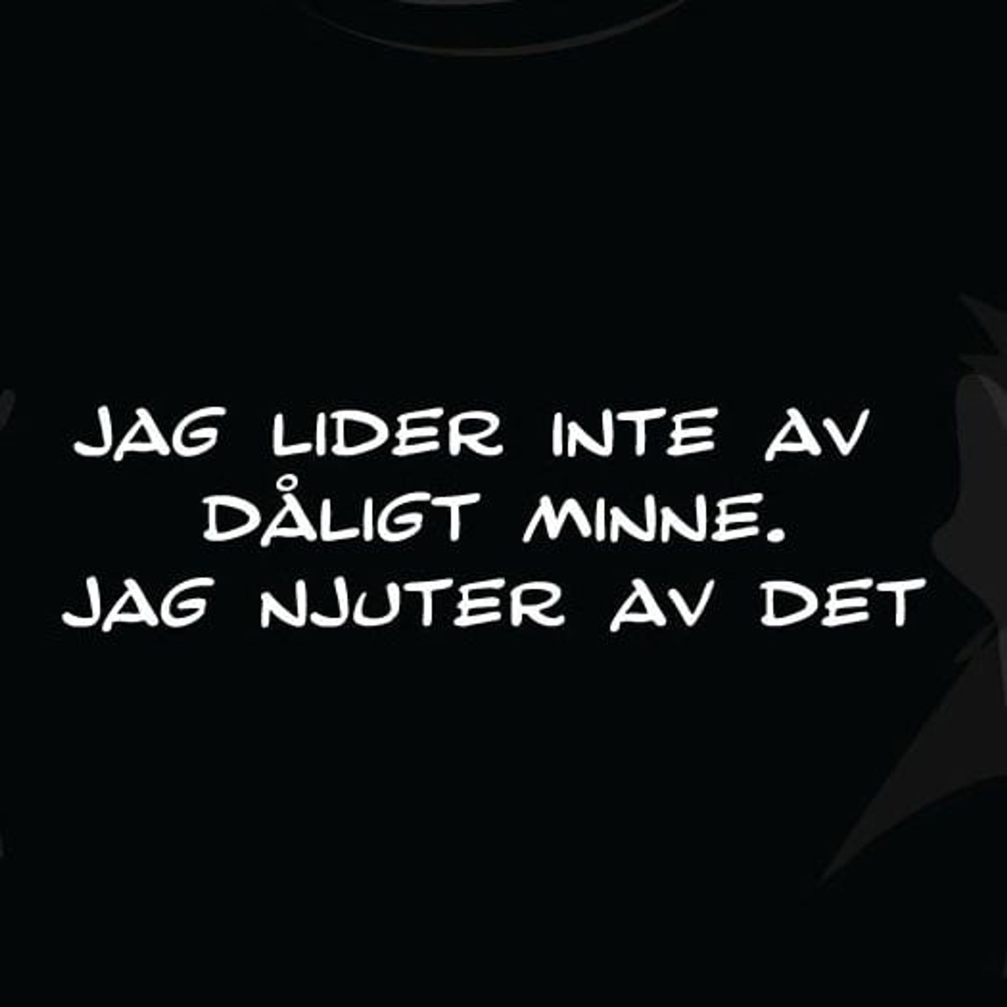 Denna svarta T-shirt med texten "Jag lider inte av dåligt minne. Jag njuter av det" är en humoristisk vink till alla som glömmer de små sakerna. En perfekt tröja för de dagar då du vill påminna dig själv och andra om att ett dåligt minne kan vara en källa till dagliga överraskningar och skratt. Idealisk för både en avslappnad look och en rolig konversationsstartare.