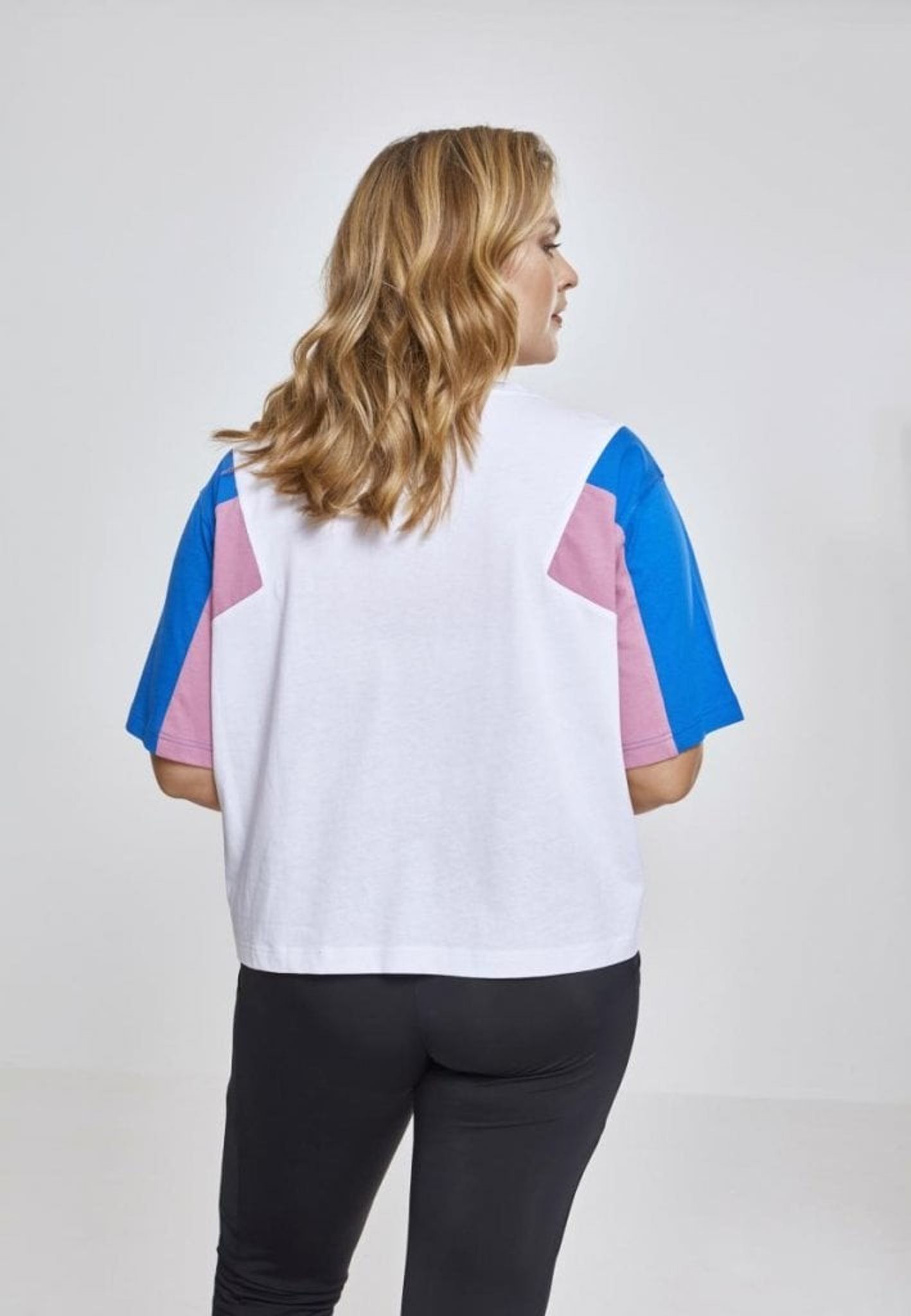 En t-shirt i kort oversizemodell. T-shirten är ledig ochg luftig. Kort arm med nedhasad axel, detaljsömmar och kontrastfärger.