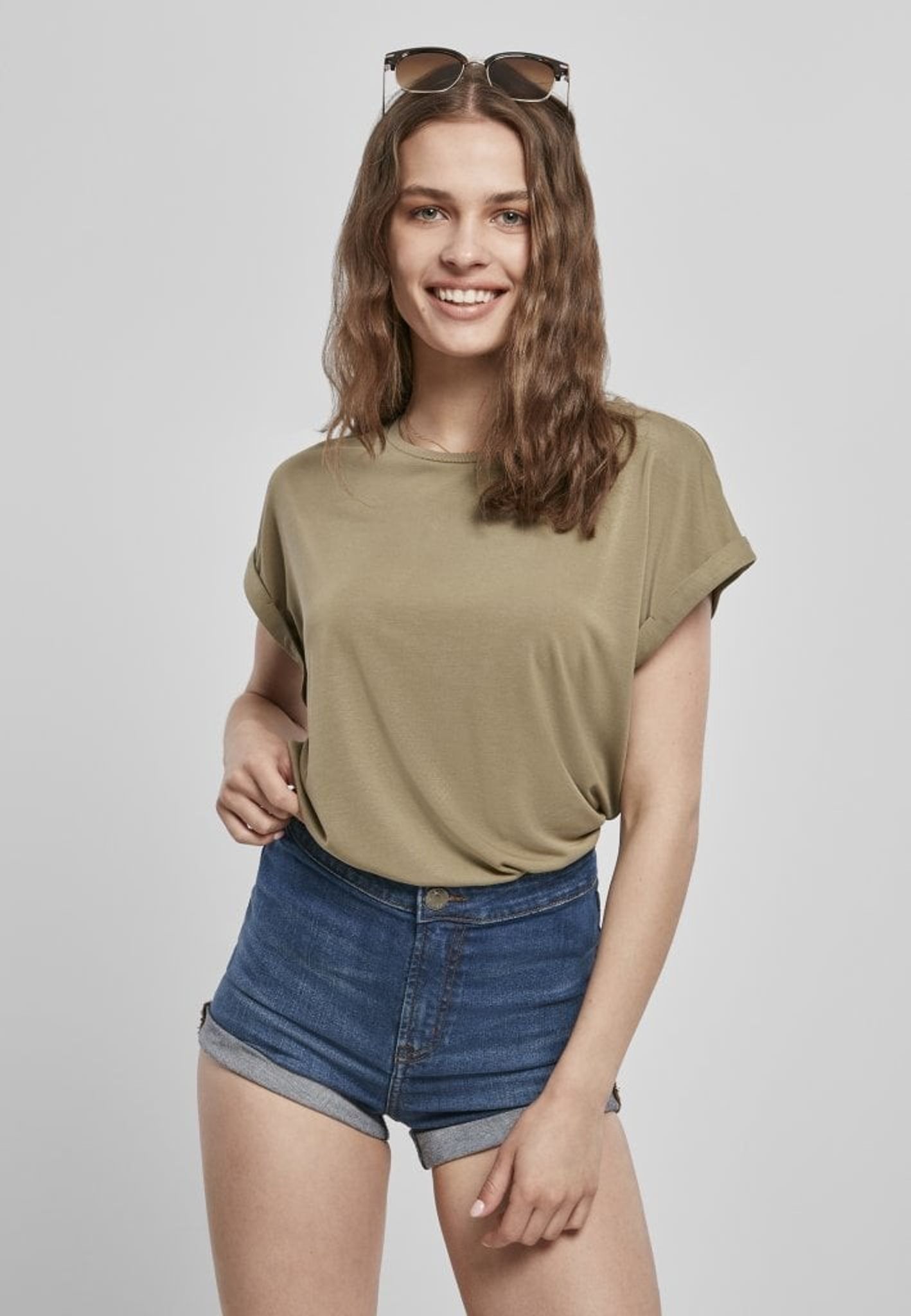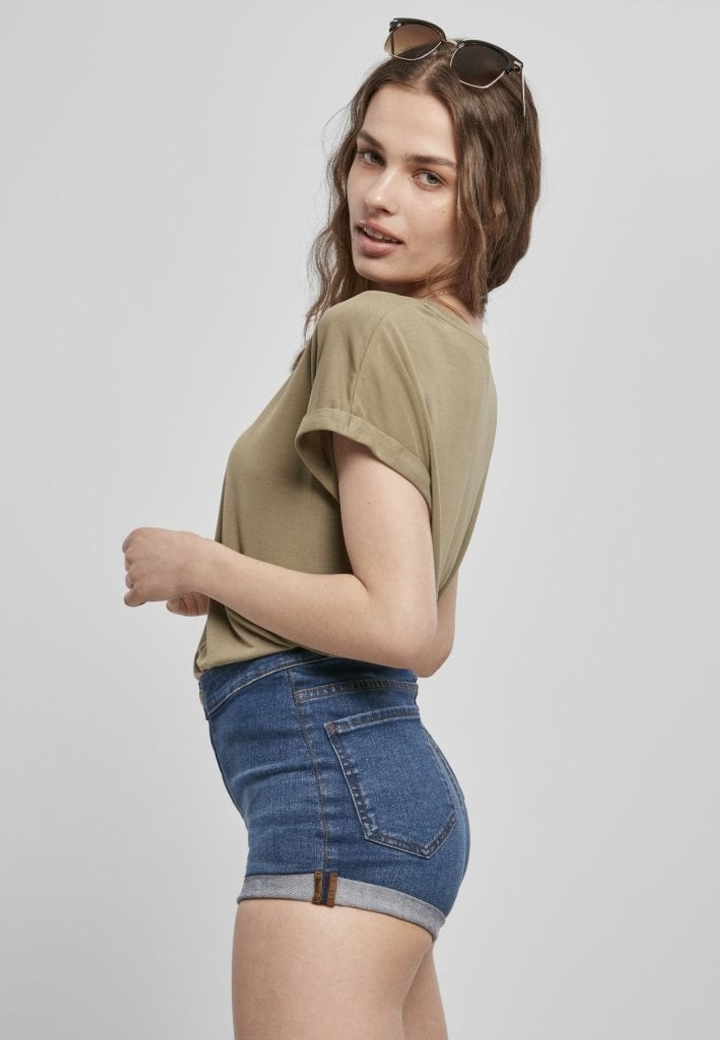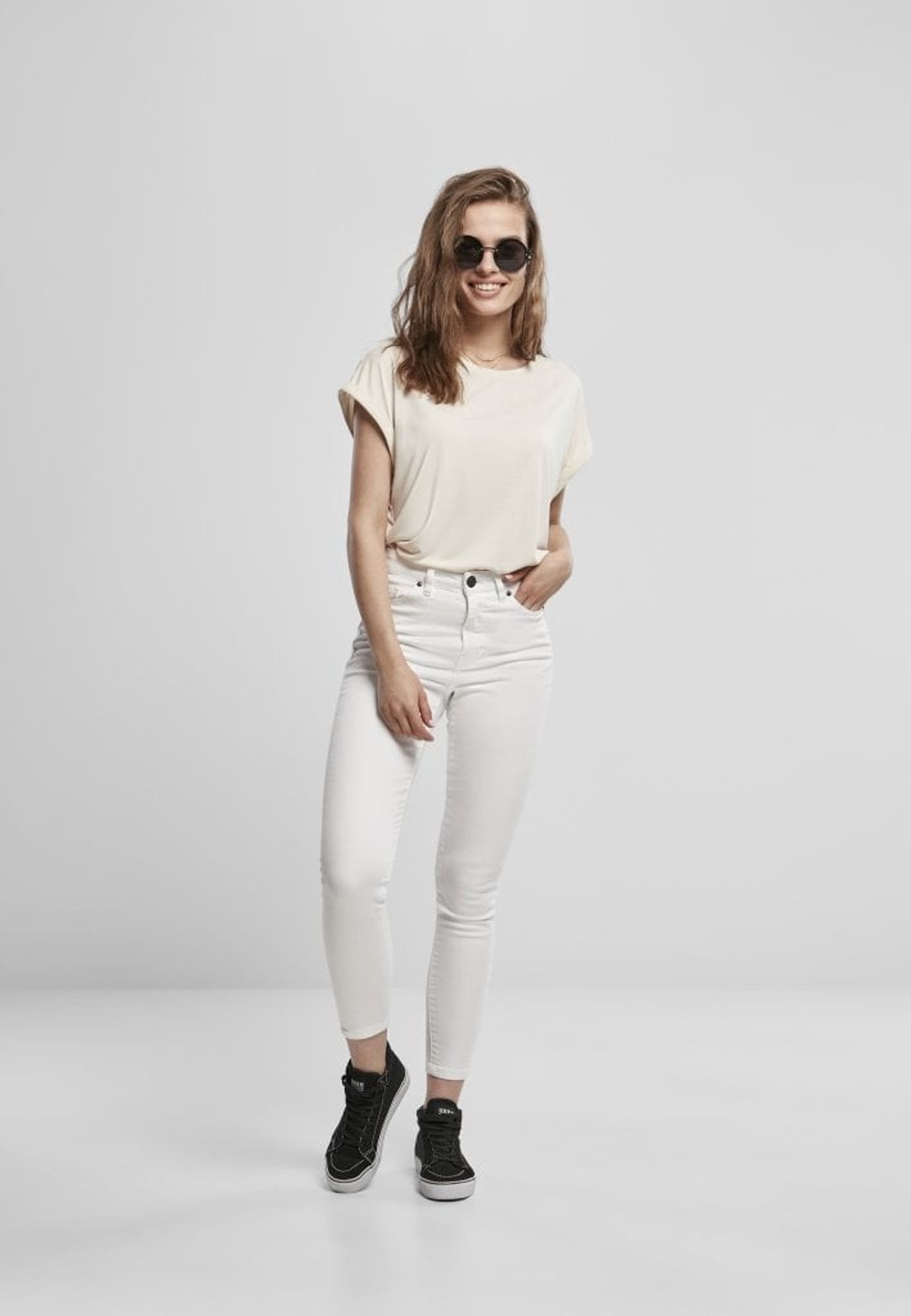 Damtopp med upprullade armar