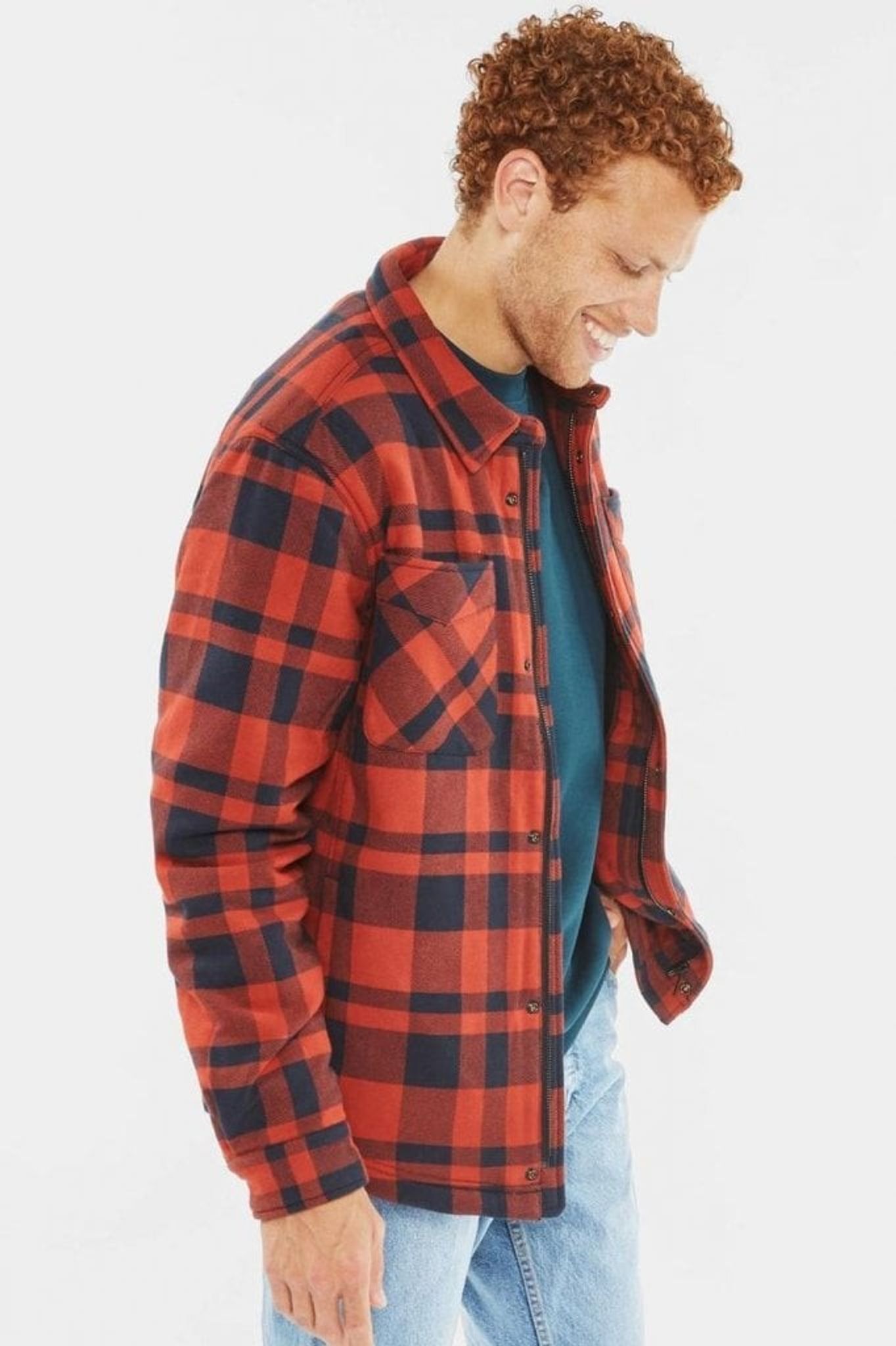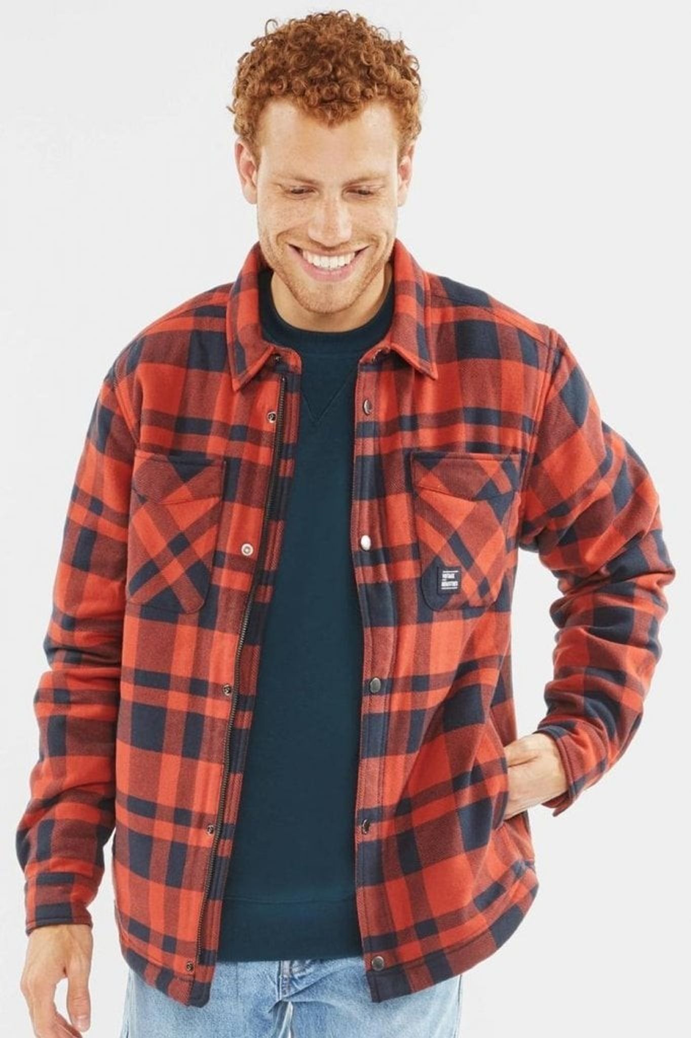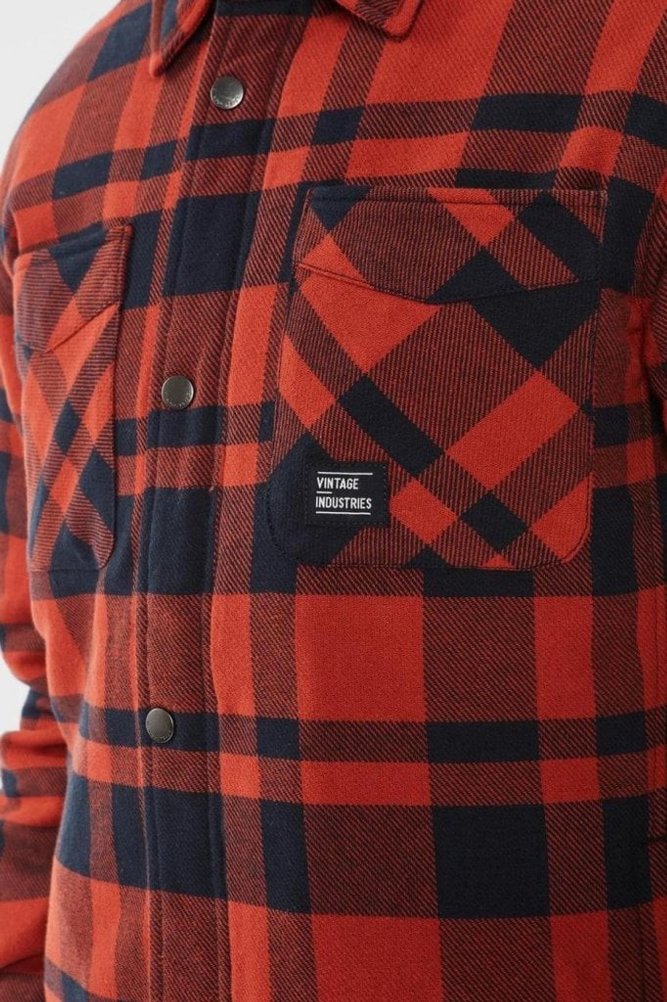 En riktigt skön skjortjacka i rutigt tyg, likt rutorna på en flanellskjorta. Jackan har ett skal i just flanelltyg och på insidan finns ett polyesterfoder med en tunnare stoppning.