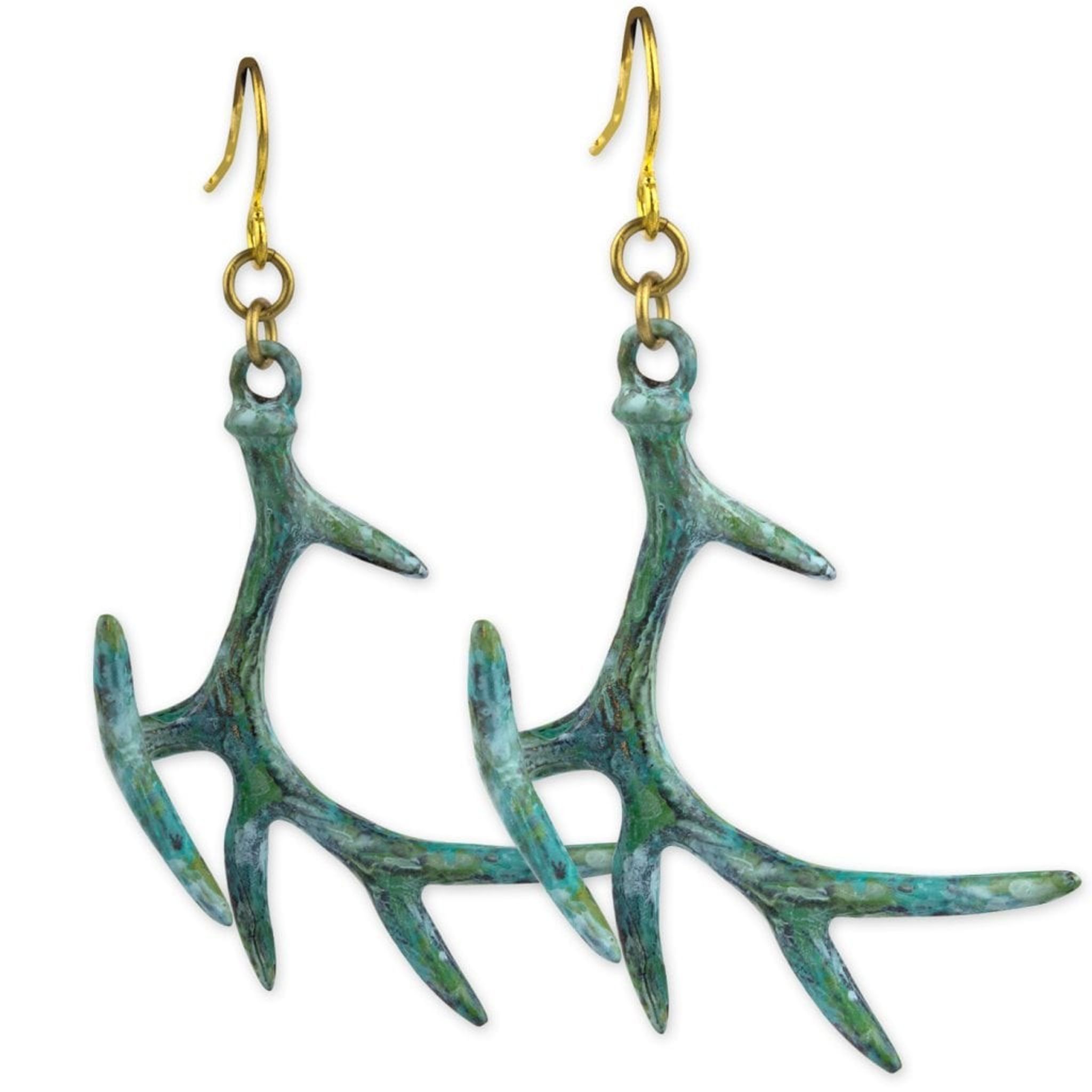Ritkigt läckra örhägnen från etNox med ett par rådjurshorn i en blandning av grön och turkos färg.