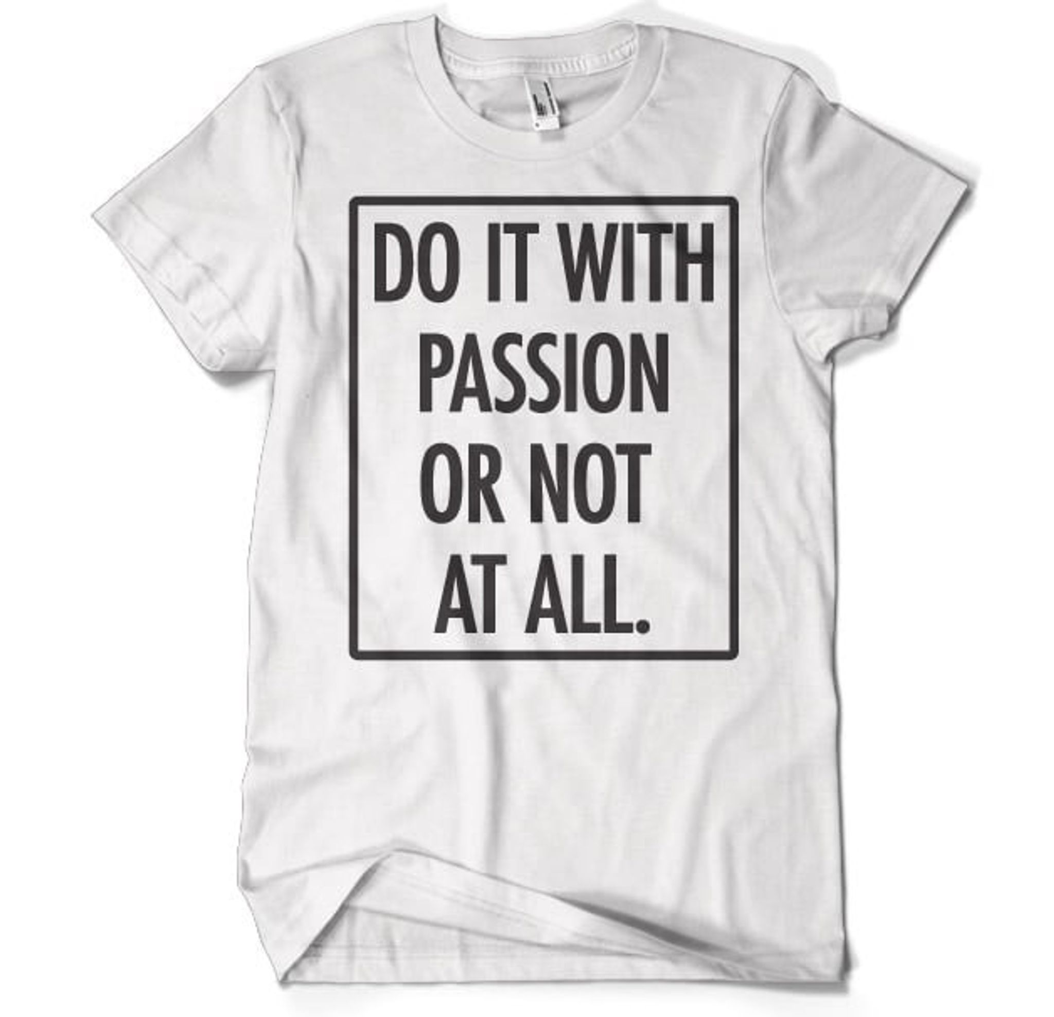 Så oavsett om du är ute efter att addera lite passion till din garderob eller ge bort en t-shirt till någon du vet brinner för det de gör, så är Do It With Passion T-Shirt det perfekta valet. Gå inte miste om chansen att låta världen veta vad du brinner för - gör det med passion!