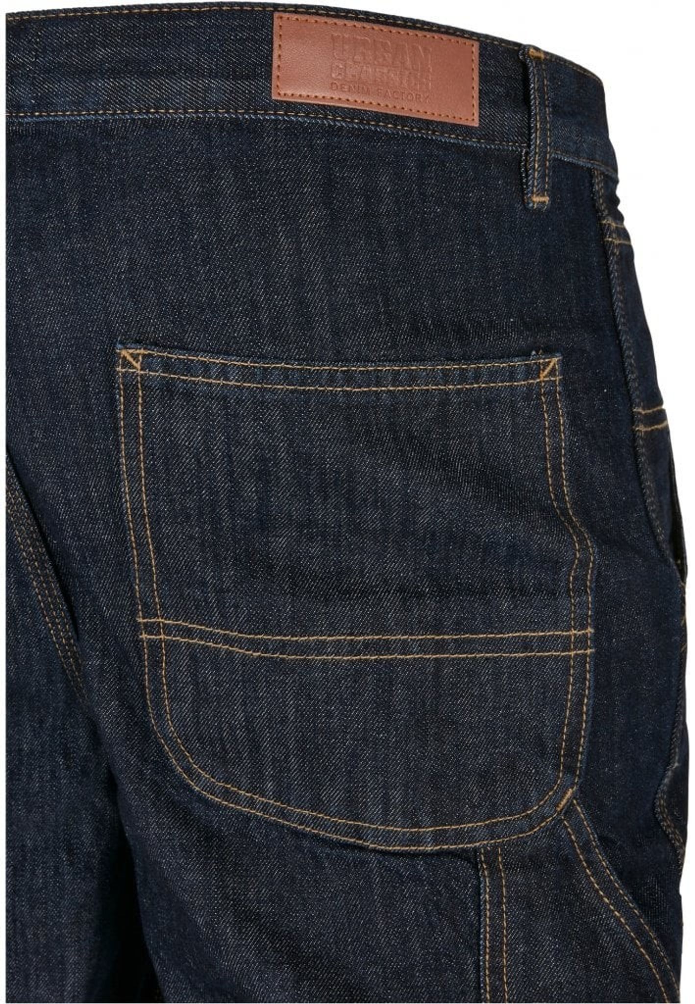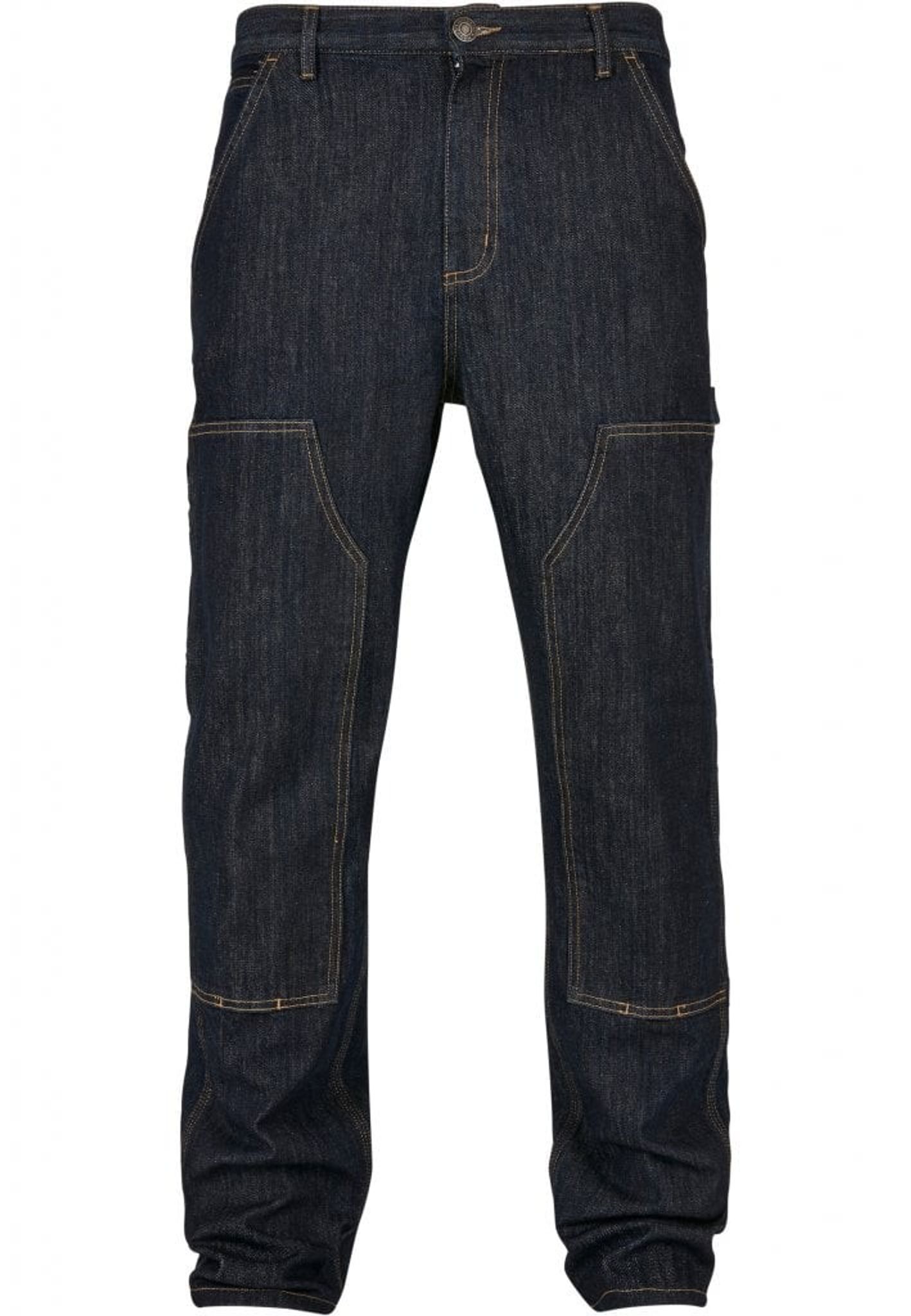 Dessa herrjeans har en unik design med dubbellager och markanta insättningar ovanför knäna. De har sidofickor och patchade bakfickor, samt en sidolös hammarslinga som ger en robust look. Jeansen är tillverkade av bomullsdenim och har en regular fit-passform.