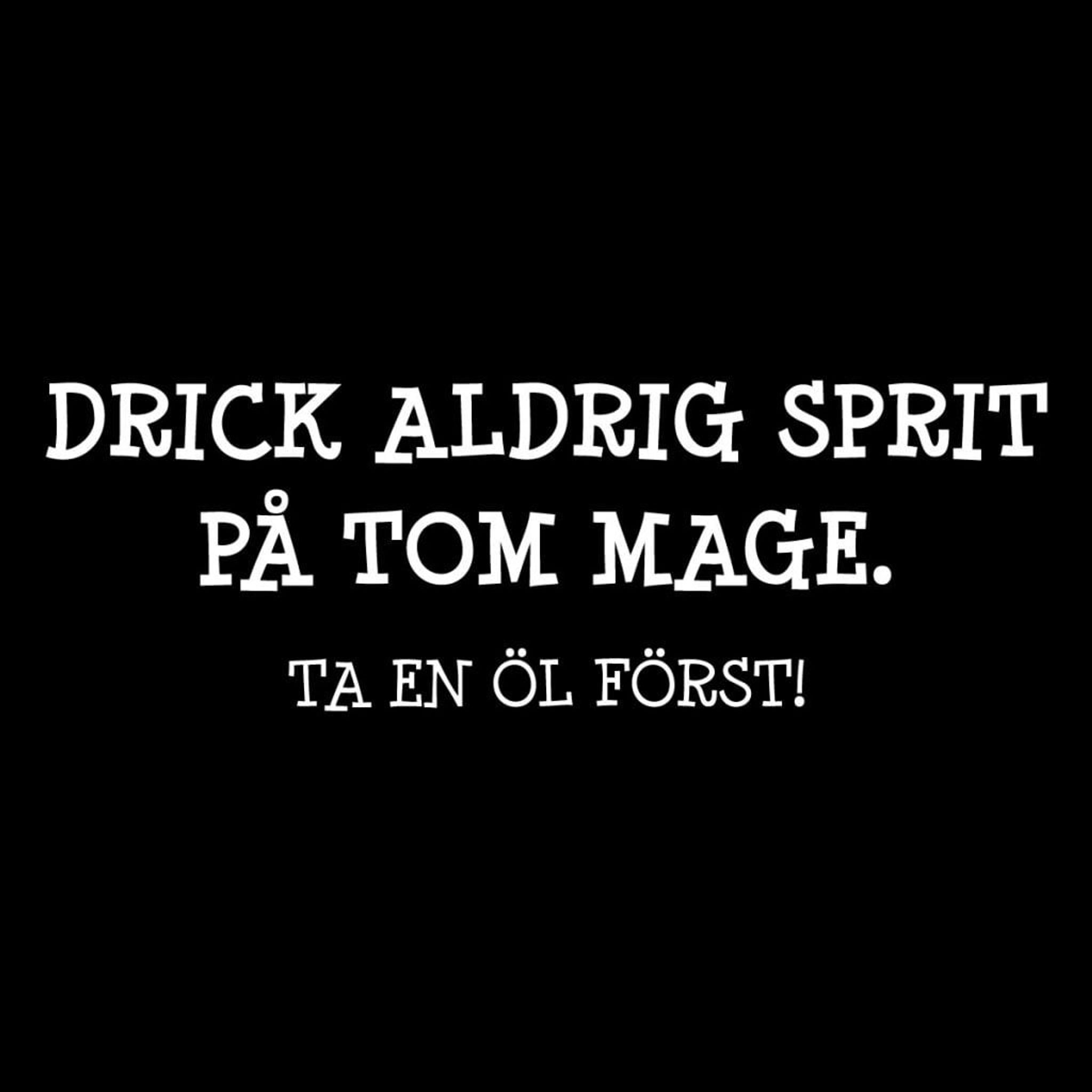 Sätt en humoristisk twist på din stil med denna skämtsamma svarta T-shirt som bär det visdomsfulla rådet: "Drick aldrig sprit på tom mage. Ta en öl först!" Detta är plagget som med en blinkning ger en ny definition åt ansvarsfullt drickande och blir en omedelbar favorit i garderoben för alla som uppskattar ett gott skratt och en kall öl.