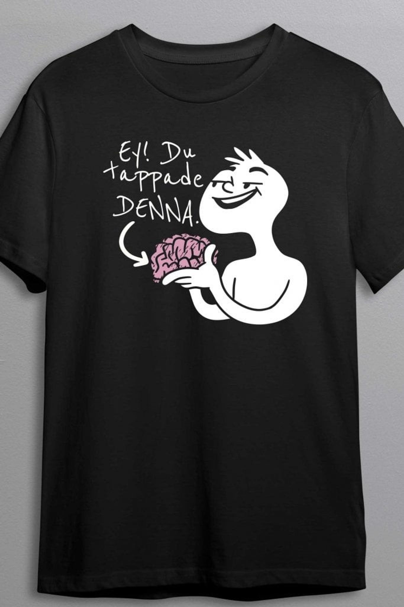 Denna T-shirt med en sarkastisk ton är perfekt för dig som älskar att skoja på ett smart och lättsamt sätt. Det roliga motivet av en karaktär som erbjuder en tappad hjärna får vem som helst att dra på smilbanden. En riktig favorit för dem med en kvick tunga och skarp humor.