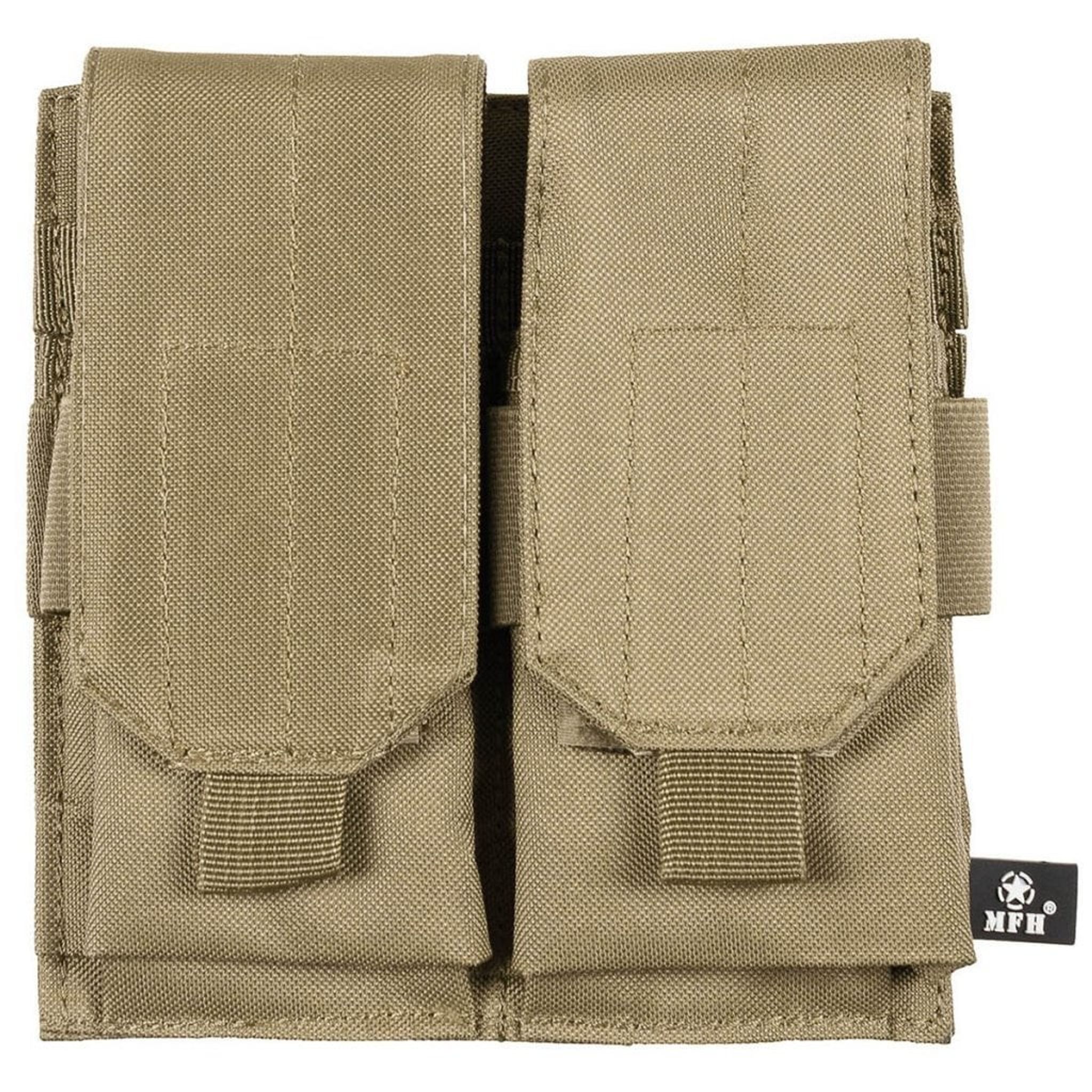Dubbel ammunitionsmodul MOLLE är en pålitlig och hållbar ammunitionspåse som är perfekt för jägare och skyttar. Den har justerbara lockflikar med kardborrband, vilket gör det lätt att snabbt komma åt din ammunition när det behövs. Dessutom har den centrala elastiska slingor för extra säkerhet och två MOLLE-fästen på baksidan med tryckknappar för enkel och säker montering.