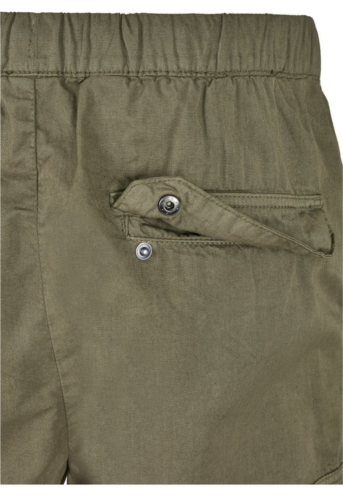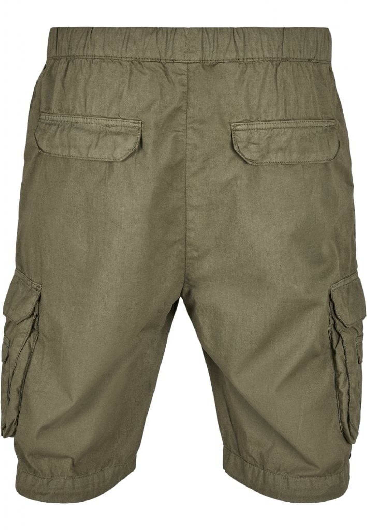 Shortsen har elastisk dragsko i bensluten och två stora fickor på benen.