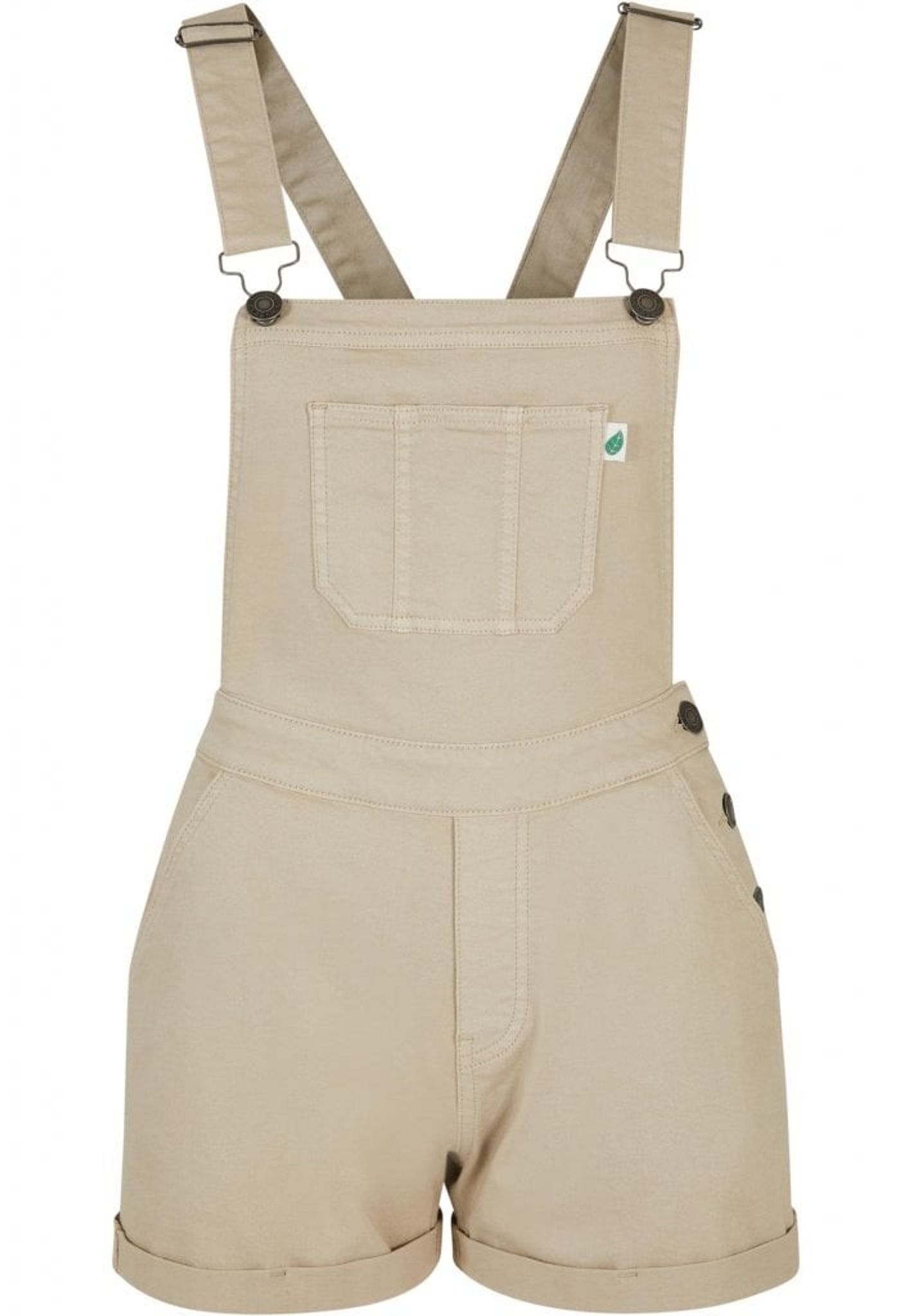 En söt bröstficka pryder framsidan av shortsen och två sidofickor och två bakfickor ger tillräckligt med förvaring för små föremål. Byxorna har justerbara remmar med metallstopp och metallknappar vid midjan.