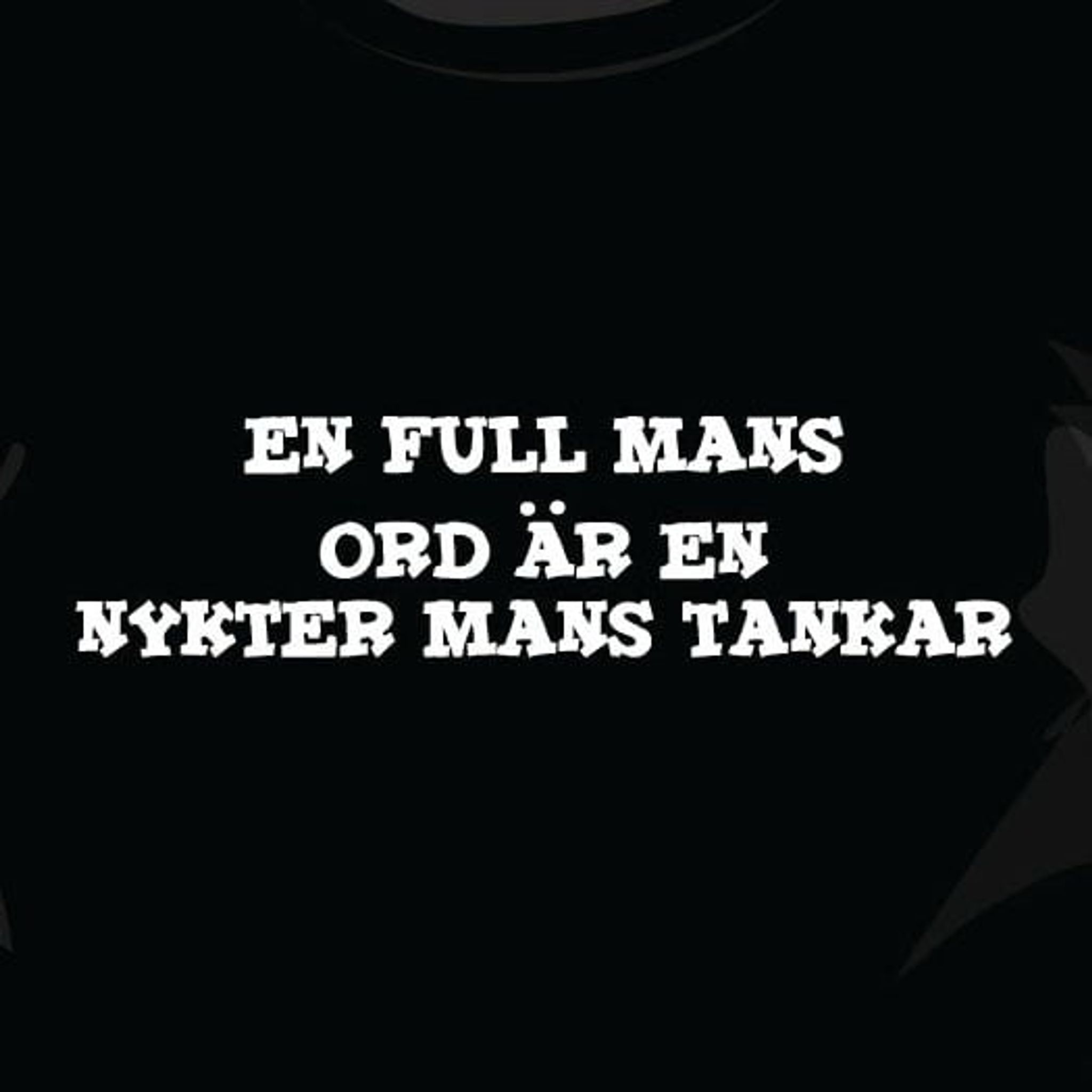 Bär på en släng av folklighet med denna svarta T-shirt som bär det gamla ordspråket "En full mans ord är en nykter mans tankar".
