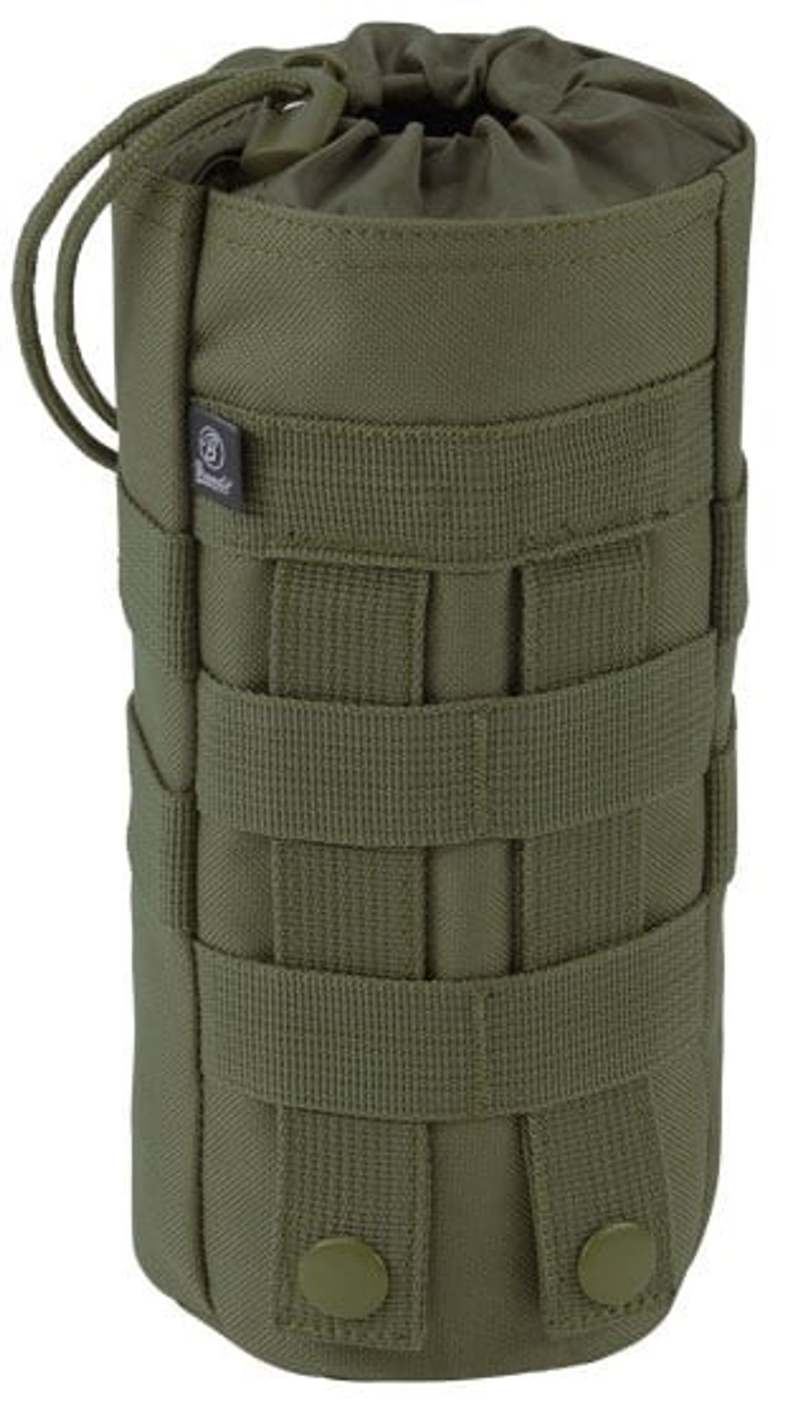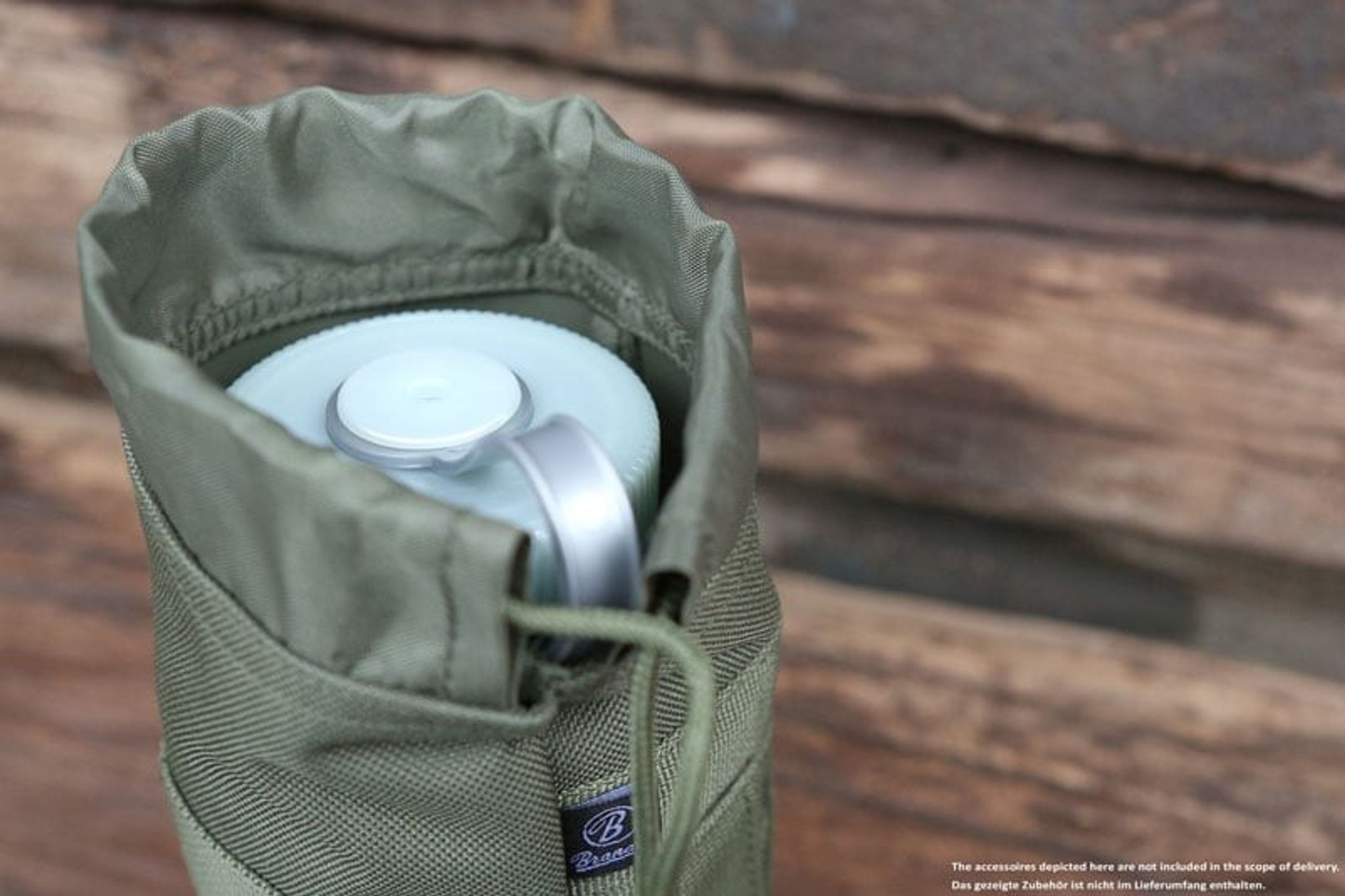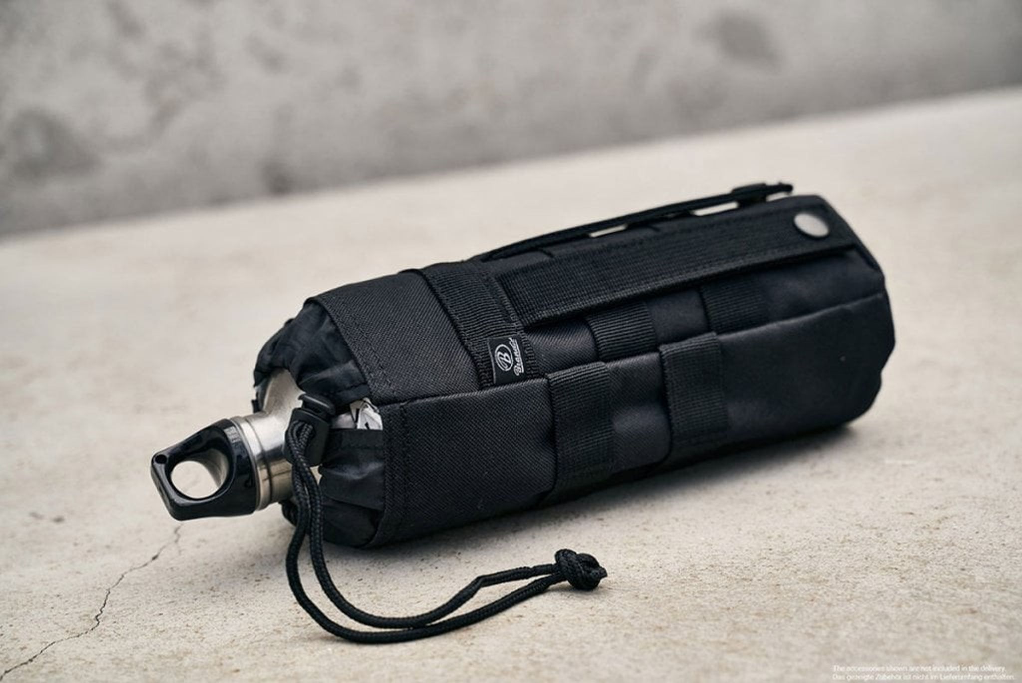 Denna flaskhållare har fästelement för att fästas i MOLLE-system och kan därför användas som modul på t.ex. ryggsäckar med MOLLE-system.
