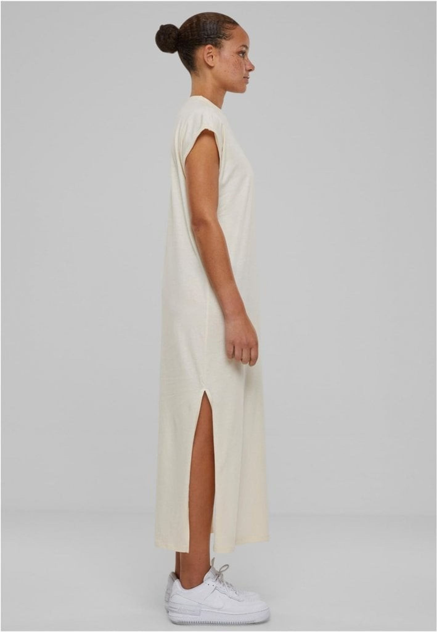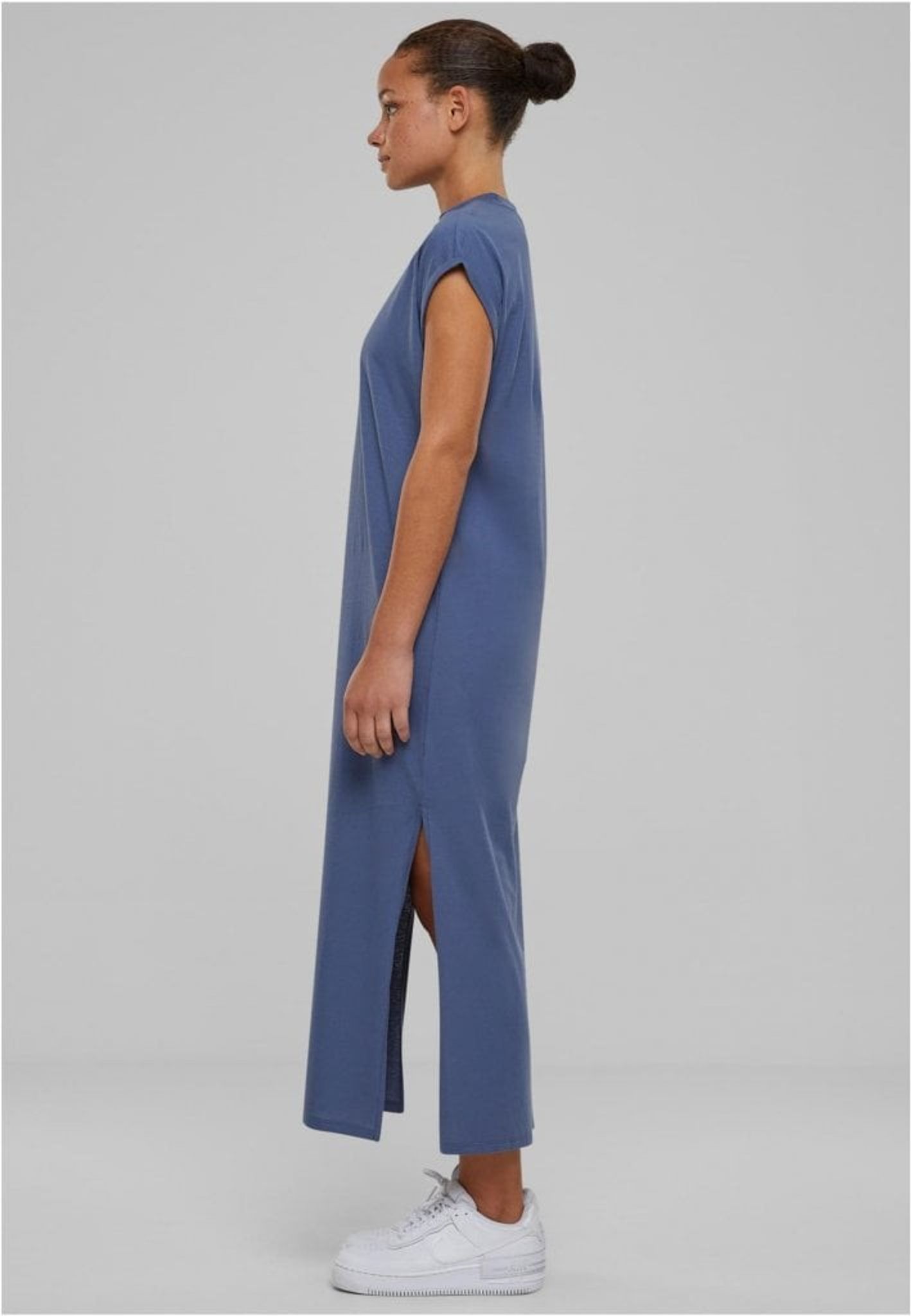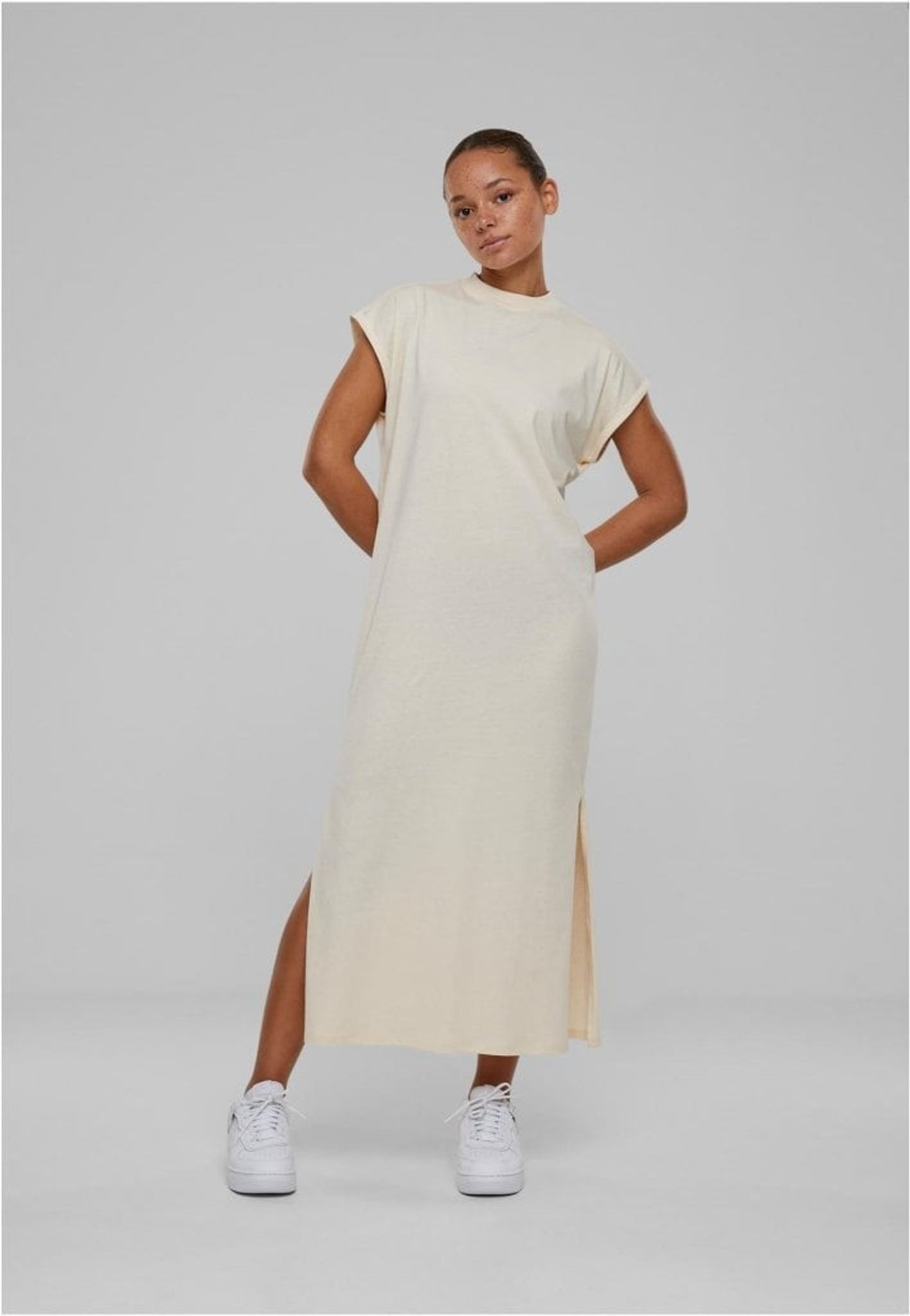 Sprundet i sidorna når precis under knäna och ger en sofistikerad touch. Klänningen är en bekväm lös passform och tillverkad av ren bomull.