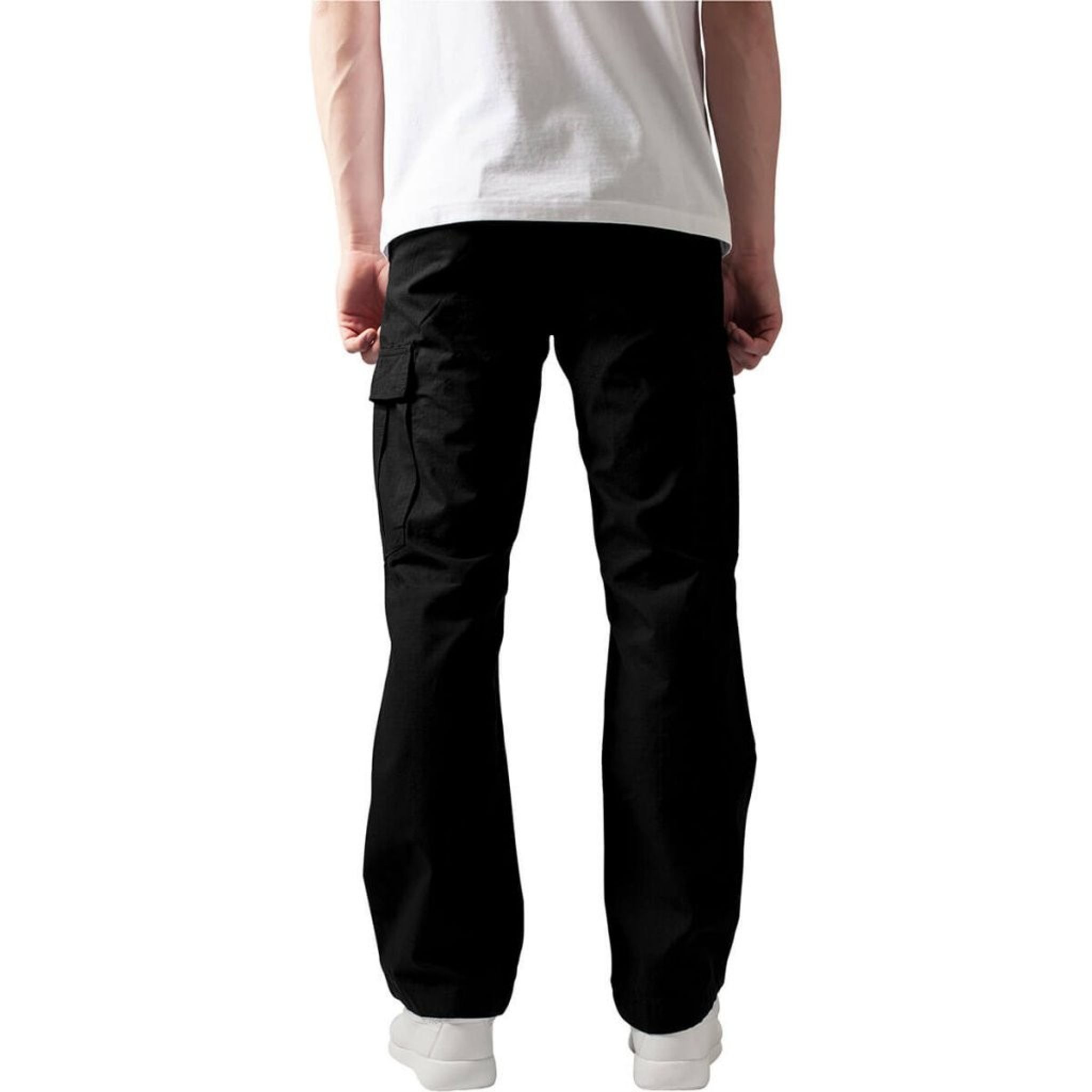 Enkelfärgade cargobyxor, där tidlös design möter funktionell elegans. Trots att kamouflagemönstret ofta är förknippat med cargobyxor, framhäver den enkla färgen byxornas sofistikerade karaktär.