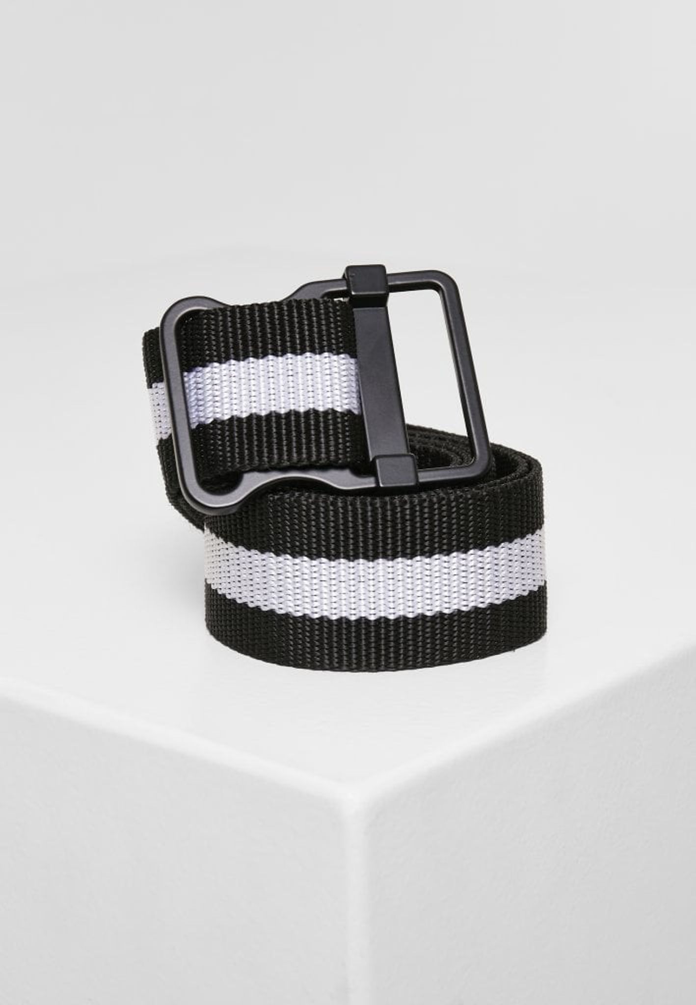 Canvasbälte med enkel design. Två svarta yttre ränder som är separerade genom en inre vit rand, som går längs hela längden. Förstärkt ände för maximal hållbarhet. Finns i längderna 110 cm (storlekar S och M) och 130 cm (storlekar L och XL).