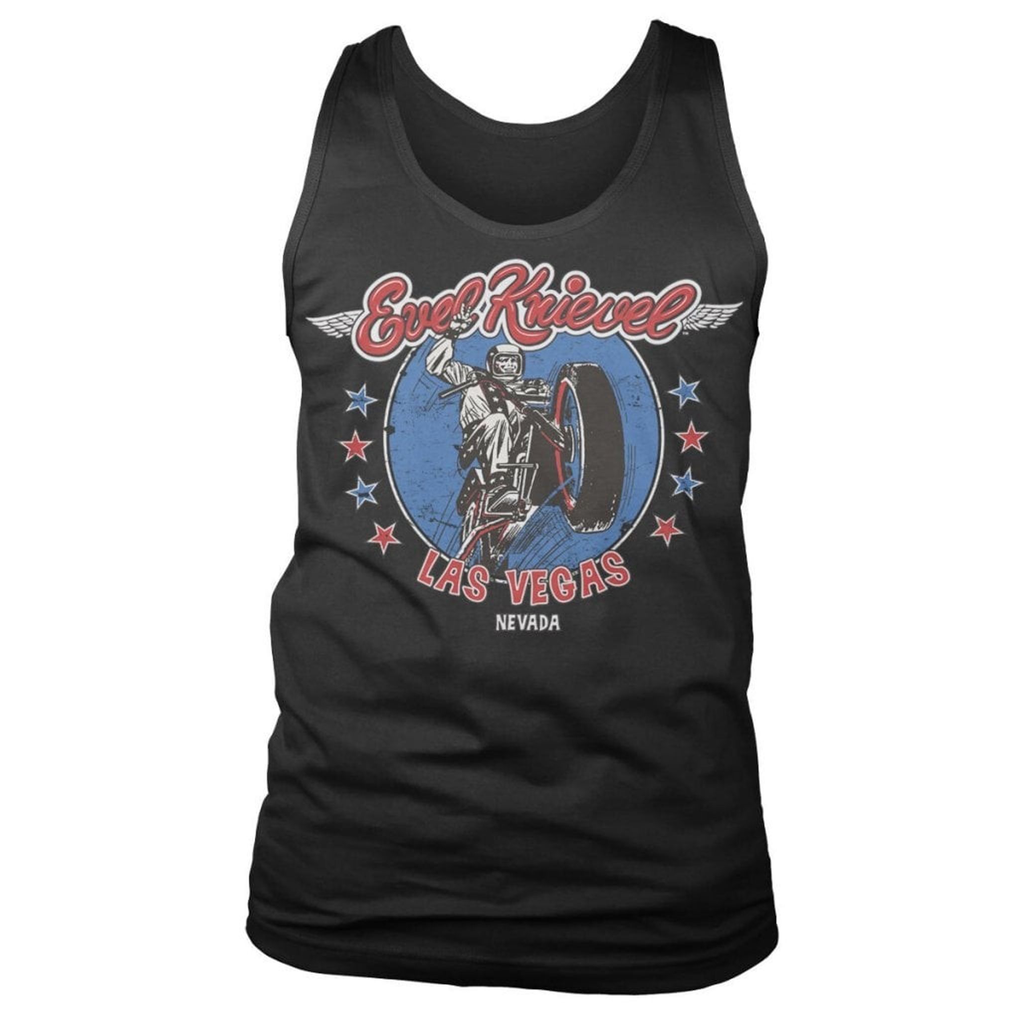 Evel Knievel är tryckt på framsidan av linnet. Detta Evel Knievel In Las Vegas Tank Top är ett klassiskt herrlinne i regular fit.