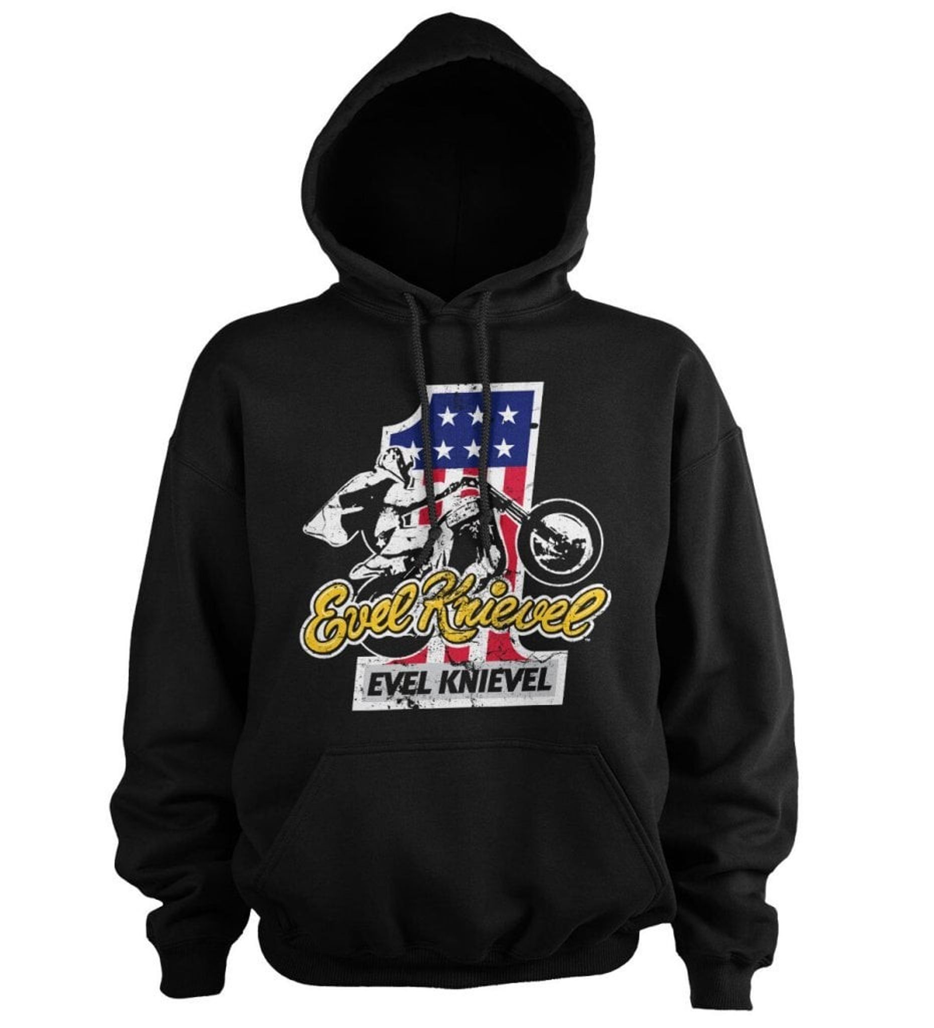 Med den här hoodien kan du kanaliserar din inre daredevil och låta världen veta att du är redo för spänning och action. Så varför inte göra en hyllning till Evel Knievel genom att bära denna hoodie och visa din respekt för en sann legend?