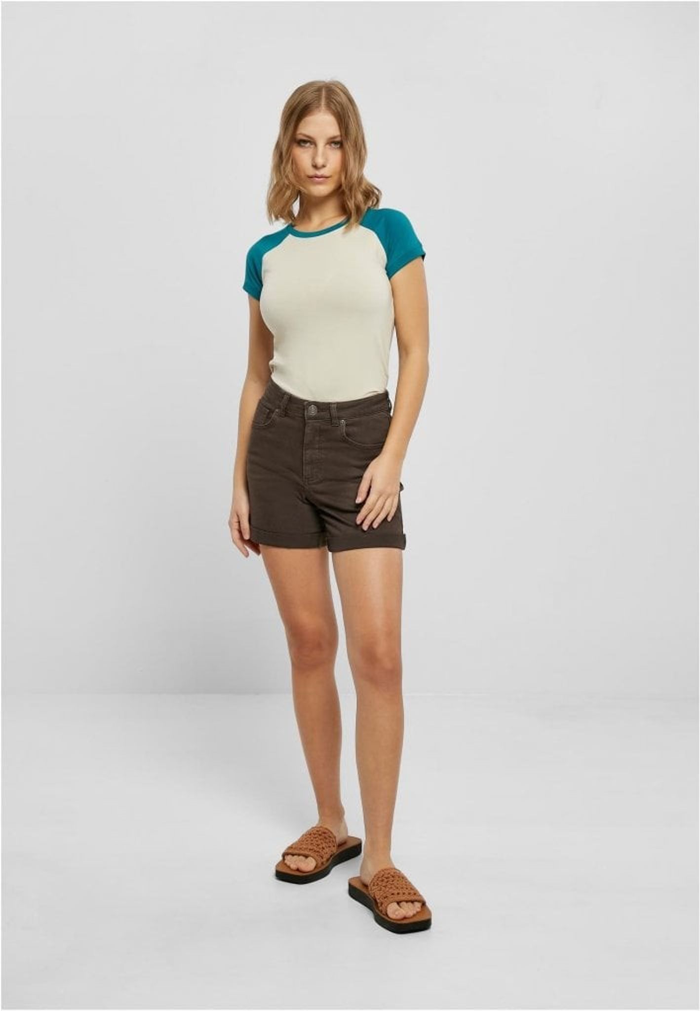 Färgade Stretch jeansshorts dam