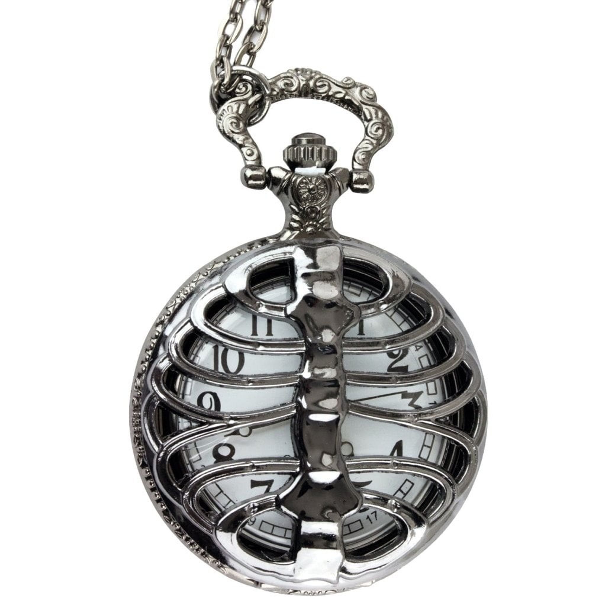 Ett läckert fickur med ett lock som fått formen av revben som kramar runt uret.