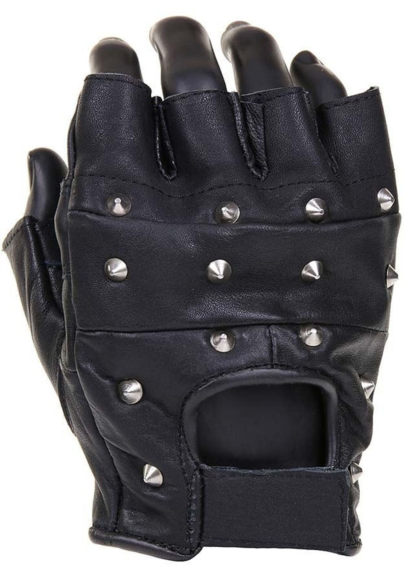 Fingerlösa skinnhandskar med nitar.