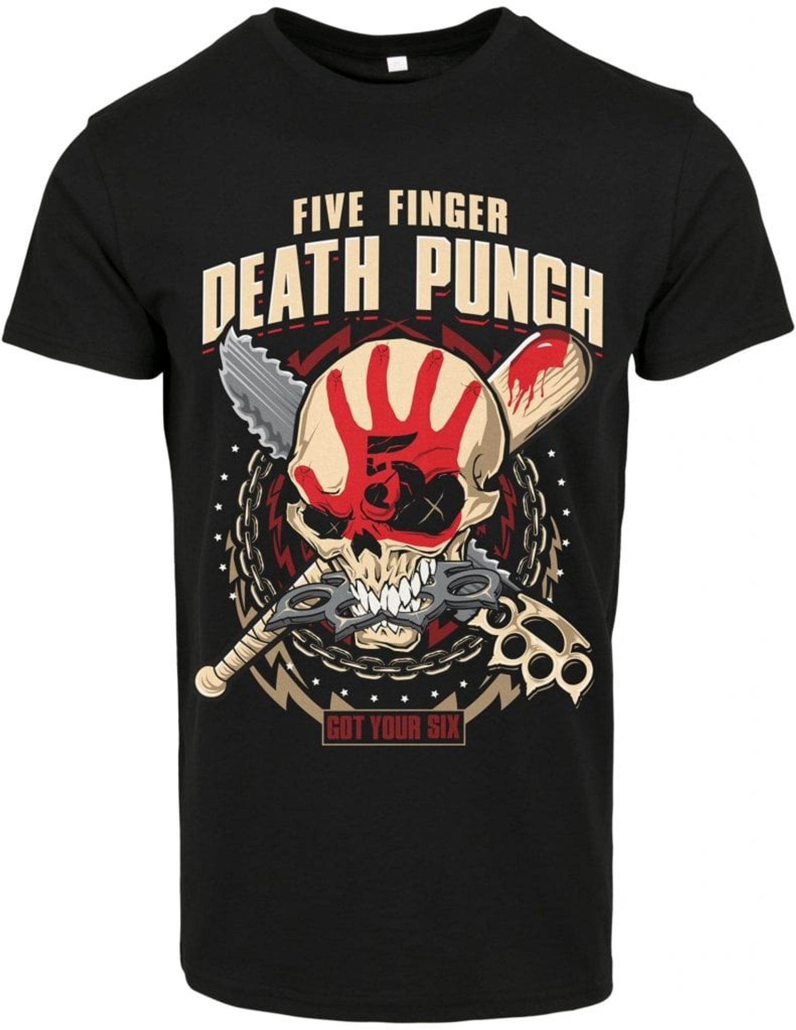 Merchandise från amerikanska Five Finger Death Punch med deras klassiska motiv tryckt på en högkvalitativ T-shirt.