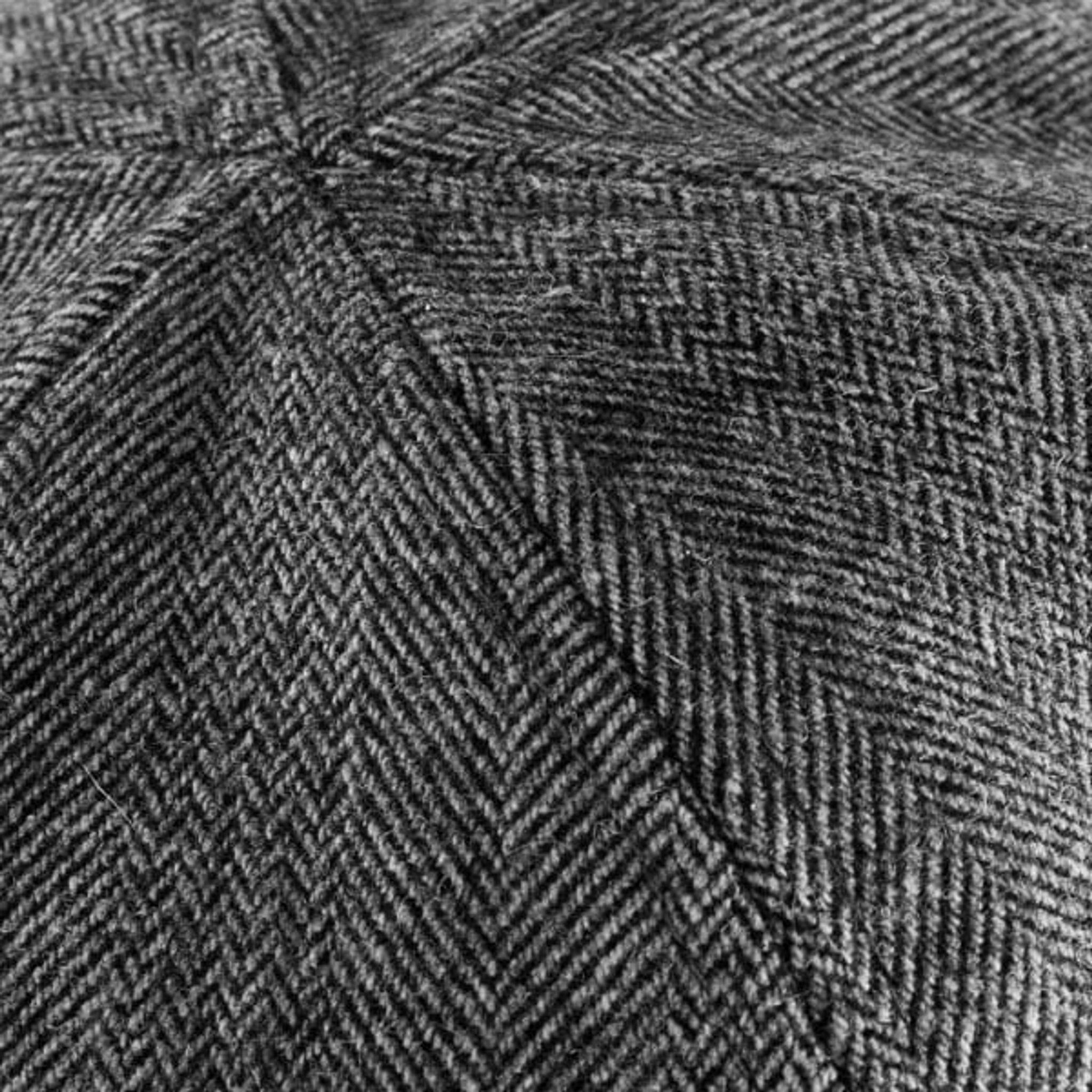 Flatcap "gubbkeps" mörkgrå fiskbensmönstrad.