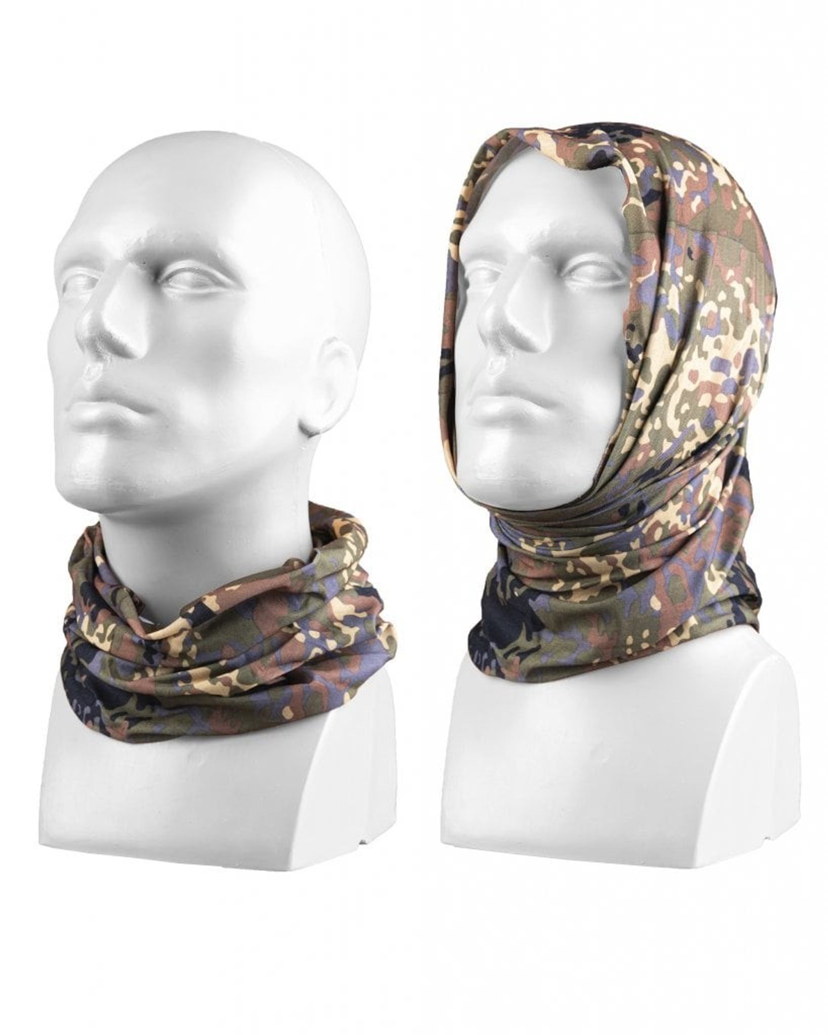 Tubhalsduk i tyska flecktarn. Tubhalsduken är ett multifunktionellt plagg som används som halsduk, ansiktsskydd, mössa, balaclava med mera.