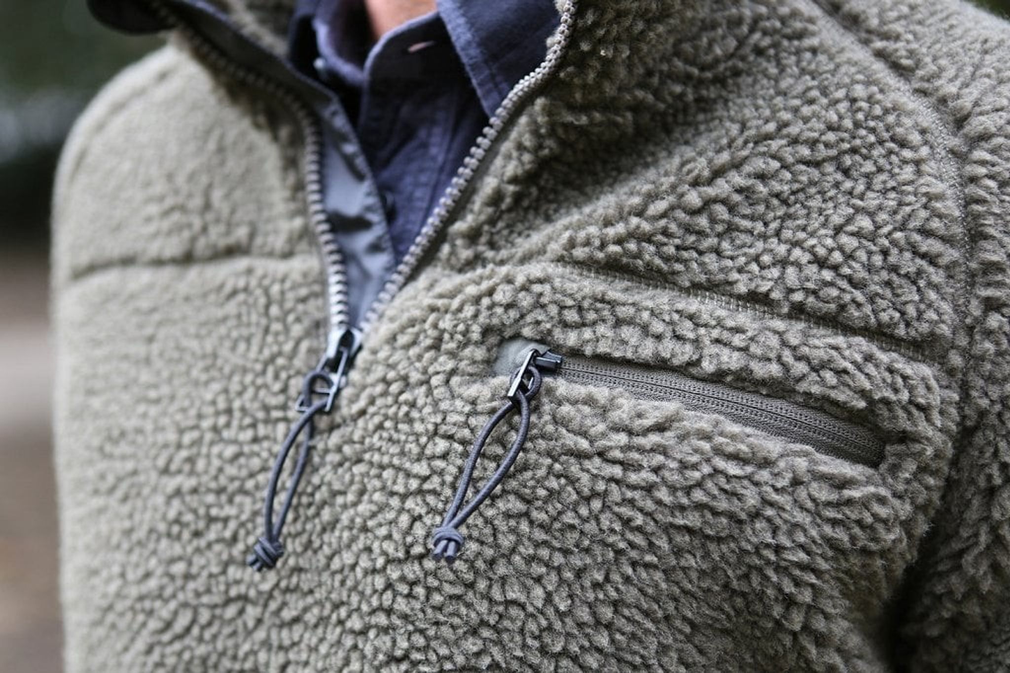 Dragkedjan vid halsen har stormklaff på insidan som hindrar vind från att leta sig in på kroppen genom dragkedjan.