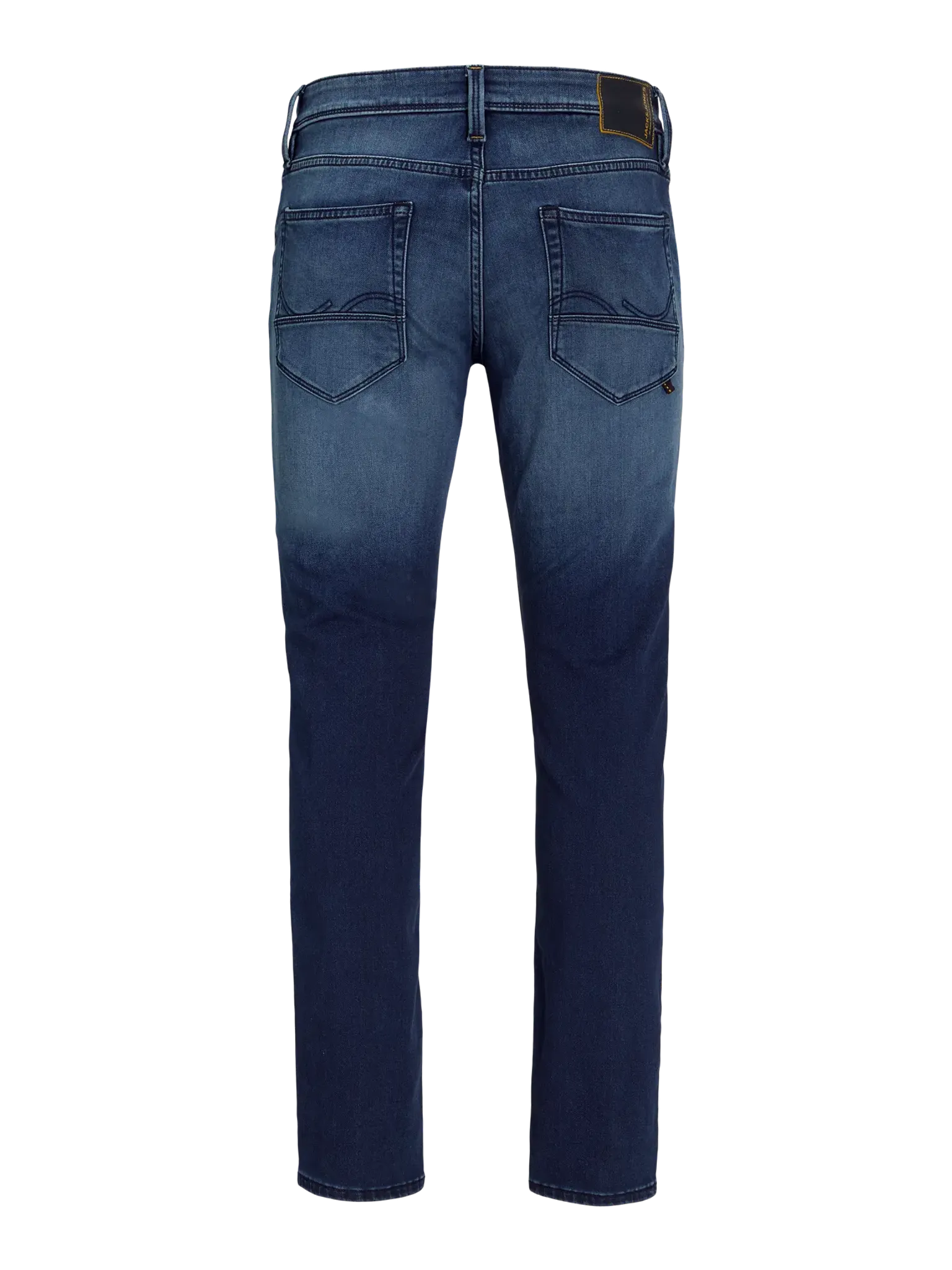 - Passform: Tapered fit jeans med vanlig midja, avslappnad lår, vanlig knä, smal benöppning