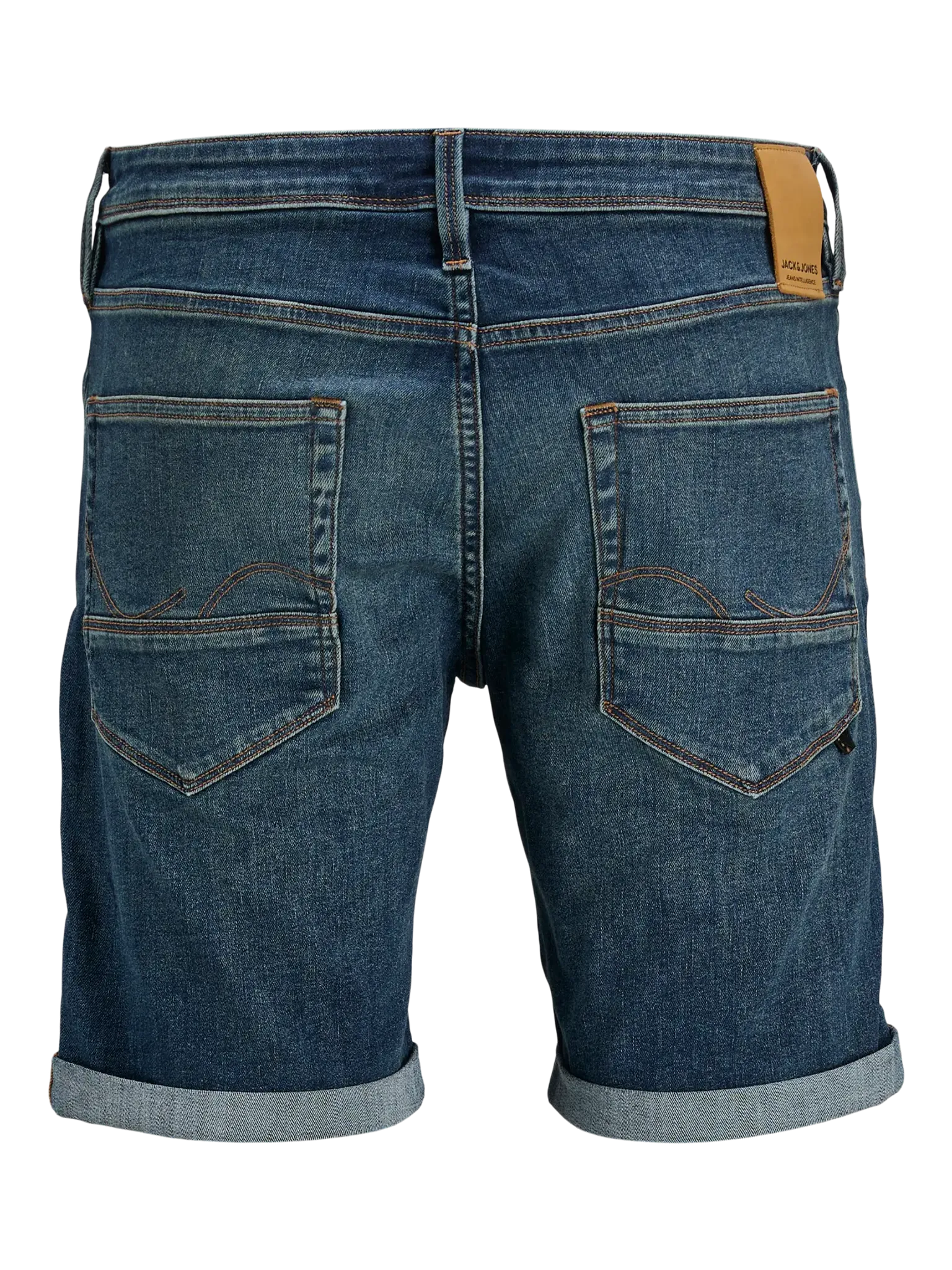Shortsen är tillverkade av denim, ett slitstarkt tyg som kännetecknas av en vävd struktur med färgad varp och inslag. Tyget har genomgått en subtil tvättprocess som ger en lätt slitageeffekt med lagningar.