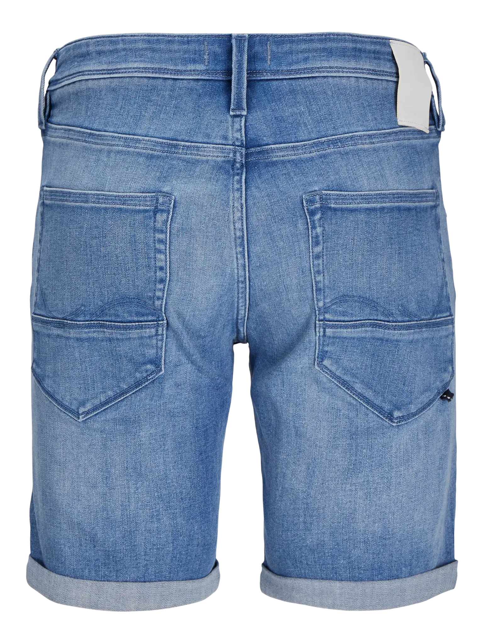 Shortsen är tillverkade av denim, ett slitstarkt tyg som kännetecknas av en vävd struktur med färgad varp och inslag. Tyget har genomgått en subtil tvättprocess som ger en lätt slitageeffekt med lagningar.