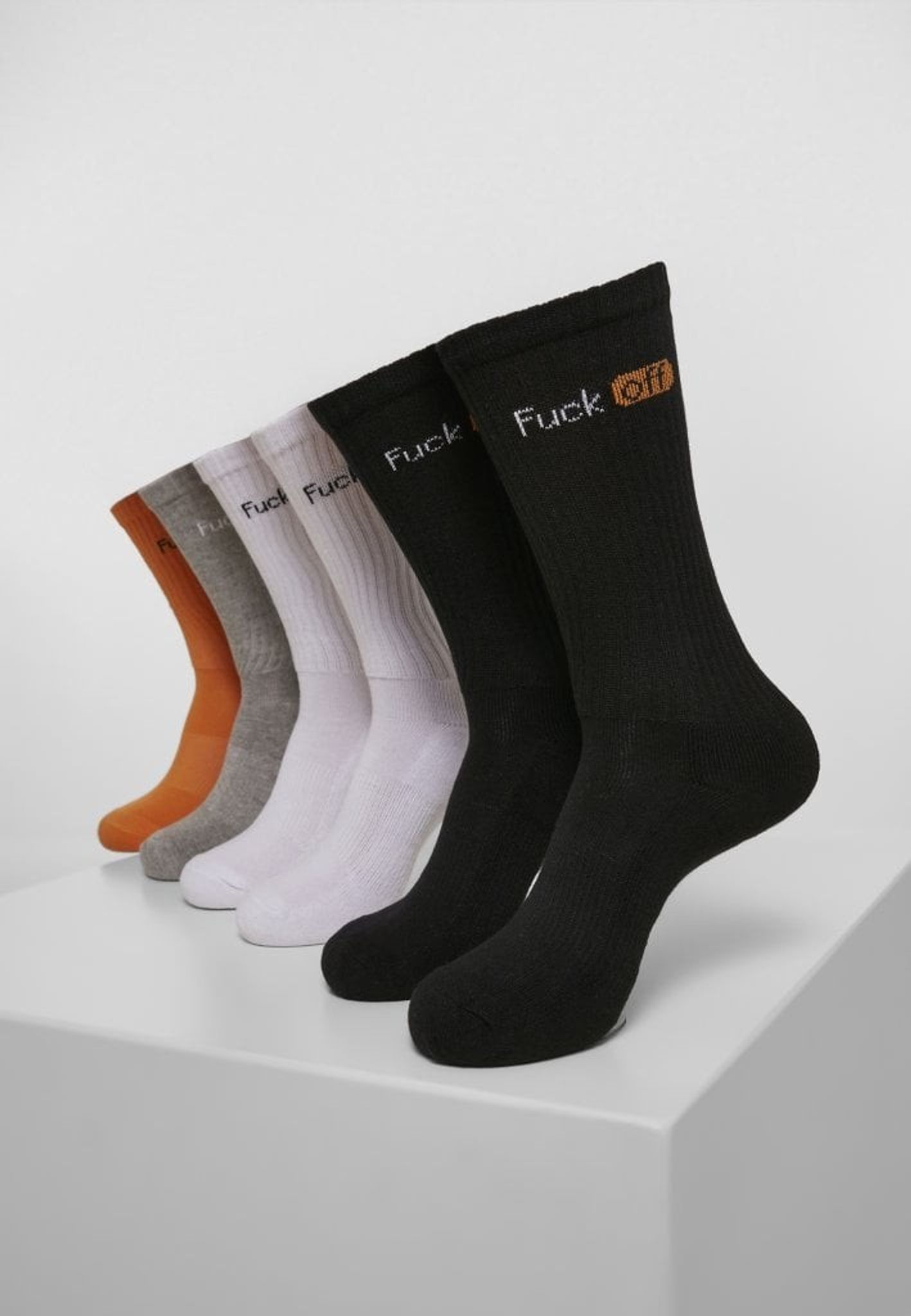 6 stycken par strumpor med den kaxiga texten "Fuck Off".