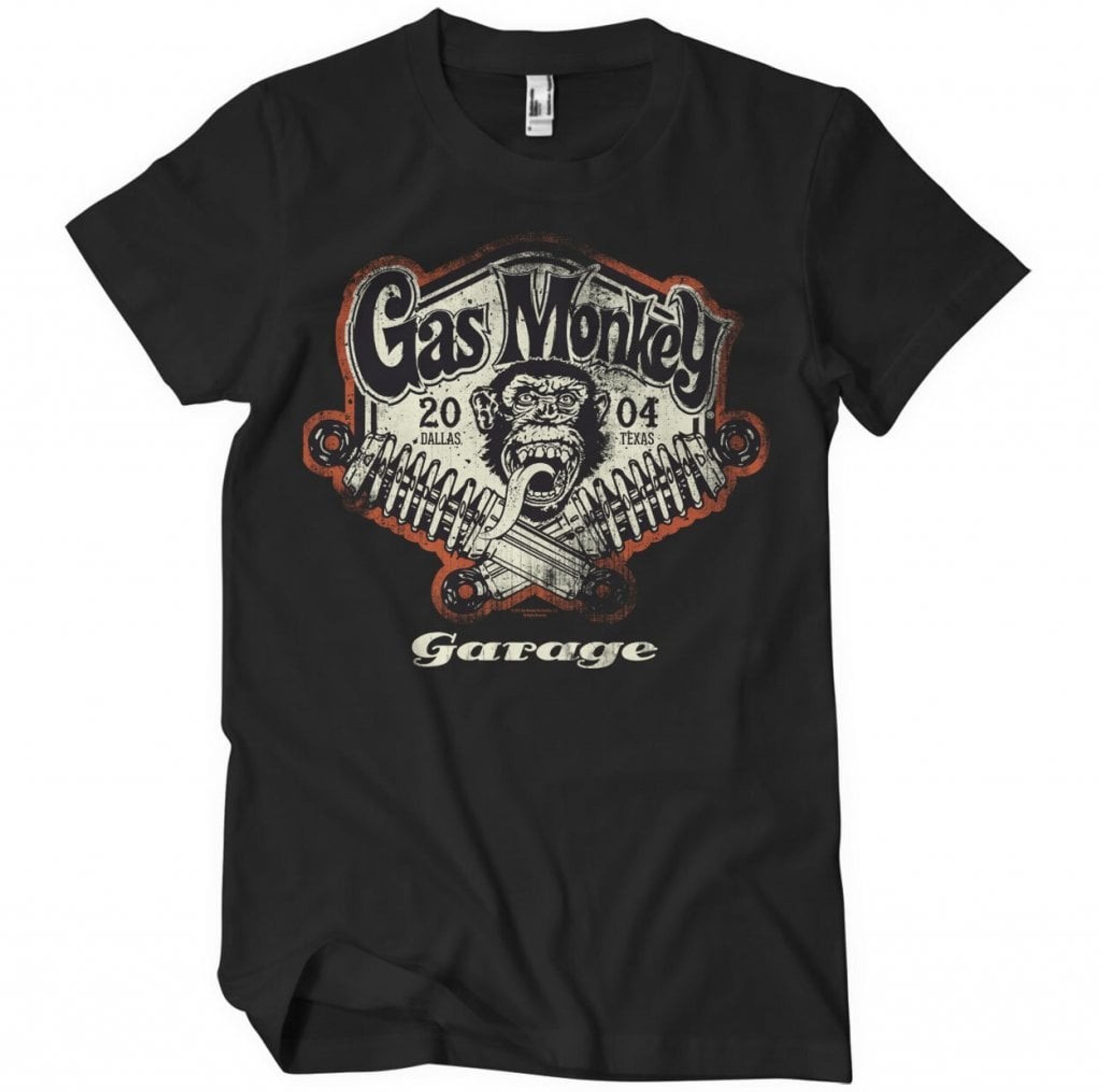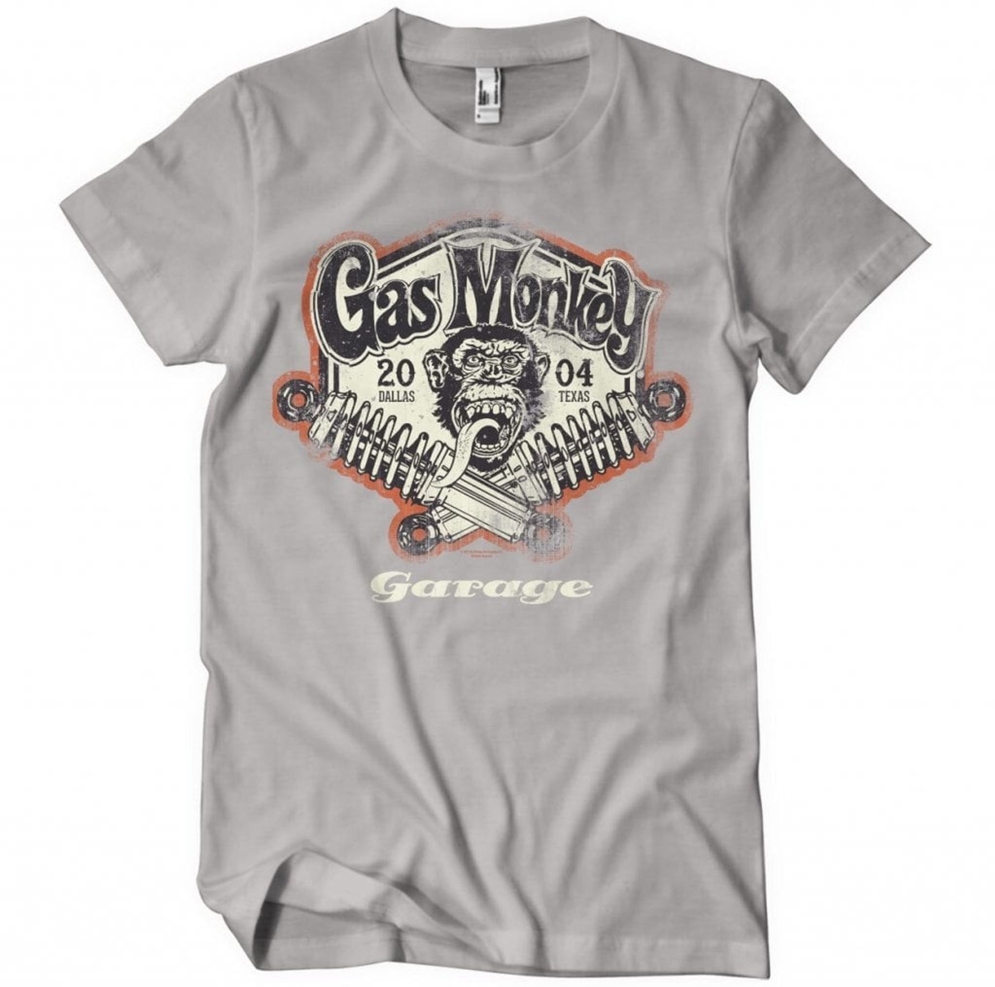Ovanför apan hittar vi texten "Gas Monkey" i ett snirkligt typsnitt, och på varsin sida står "20" och "04" som en hyllning till året då Gas Monkey Garage såg dagens ljus. Det är som att T-shirten bär med sig en bit av historien, där varje sliten söm berättar om de många timmarna av svett och motorolja som lagts ner i verkstaden i Dallas, Texas.